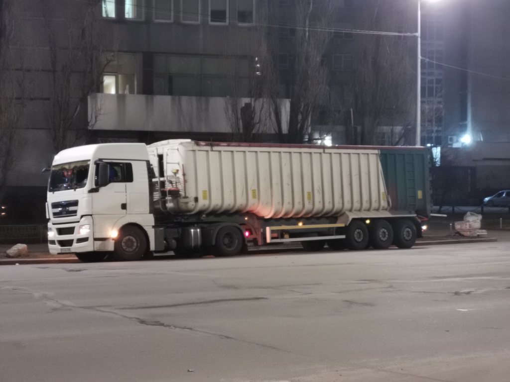 Днями в Києві помічено вельми незвичайний автопоїзд у складі сідлового тягача MAN TGX. А вся справа в його самоскидному напівпричепі, який привертає увагу своєю нестандартною формою – зі ступінчастим кузовом та округлими в нижній частині бортами з потужними вертикальними ребрами жорсткості.