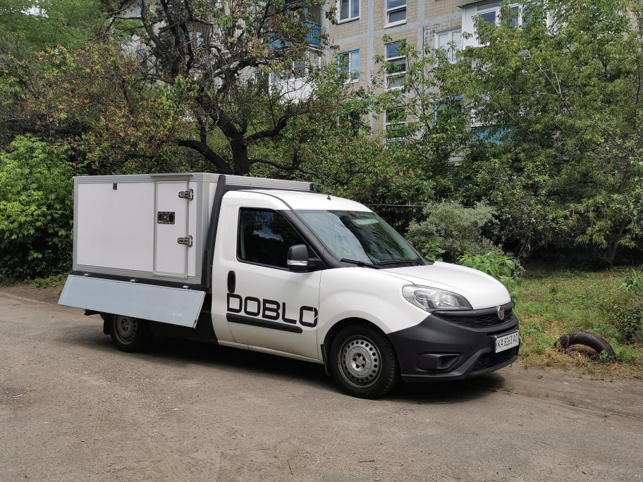 Приблизно такі, тільки іще з встановленим холодильним агрегатом, використовують доставщики морозива. Наразі тут перевозять обладнання для дезінфекції, зокрема резервуари з антисептиком. Тому для цієї мети і застосували “ізотерм”, щоб дезрозчин не нагрівався на сонці. Для доступу в фургон через бічні дверцята потрібно відкидати ще й борти, а от задні стулкові дверцята відкриваються одразу – заднього борту тут немає. У будь-який момент фургон можна зняти і використовувати «Добло» як повноцінний бортовий автомобіль.