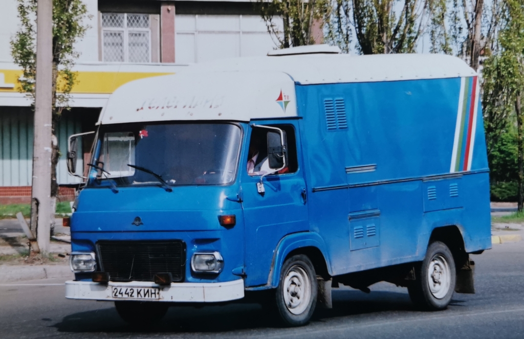 Нещодавно в Києві вдалося сфотографувати досить рідкісний сьогодні розвізний автомобіль – суцільнометалевий фургон Avia A21Т. Більше того, машина була в незвичайному виконанні – в якості пересувної телевізійної станції. Зовні вона відрізняється ефектним забарвленням, написом «Телебачення України» та досить важким кондиціонером на даху. На її борту є ще один напис – НВФ «Відеотехніка». Ця фірма, мабуть, і встановила на машину спеціалізоване обладнання для проведення телетрансляцій.