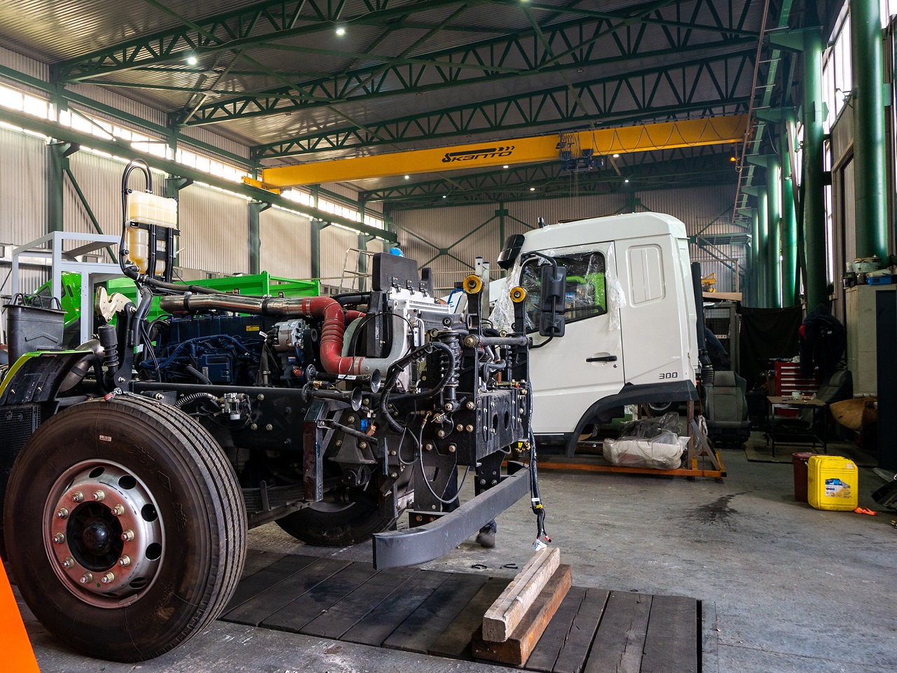 Кременчуцький завод комунальної техніки “Альфатекс” зібрав першу партію з 30 машин Dayun CGC1210. Це нове для вітчизняного ринку шасі розраховане на вантажопідйомність 15 т і повну масу 21 т. Частина машин уже передана клієнтам, причому з різними кузовними надбудовами: сміттєвози, автовишки, самоскиди, дорожньо-комбіновані машини.