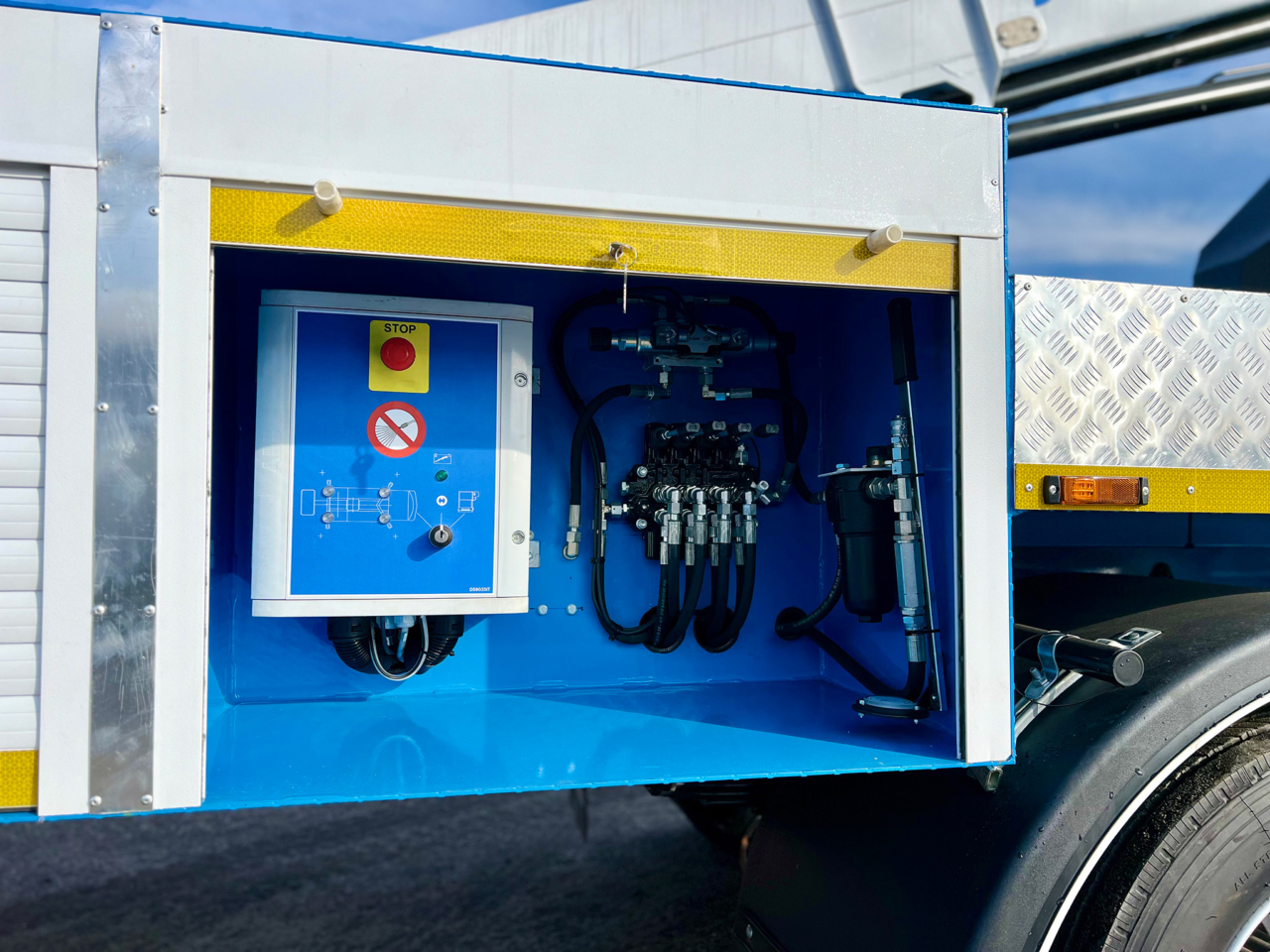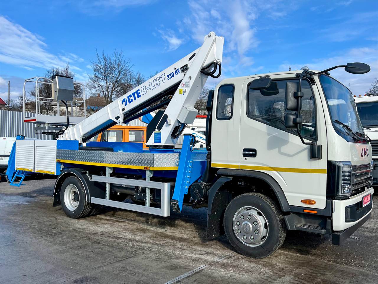 Кременчуцький завод комунальної техніки «Альфатекс» днями передав замовнику свій новий продукт. Це автовишка CTE B-Lift 230HY, встановлена на шасі JAC N120. Чотирьохсекційна стріла коробчатого профілю забезпечує робочу висоту підйому 22 м і максимальний виліт 11,3 м. Кошик має вантажопідйомність 300 кг та електроізольований до 1000В.