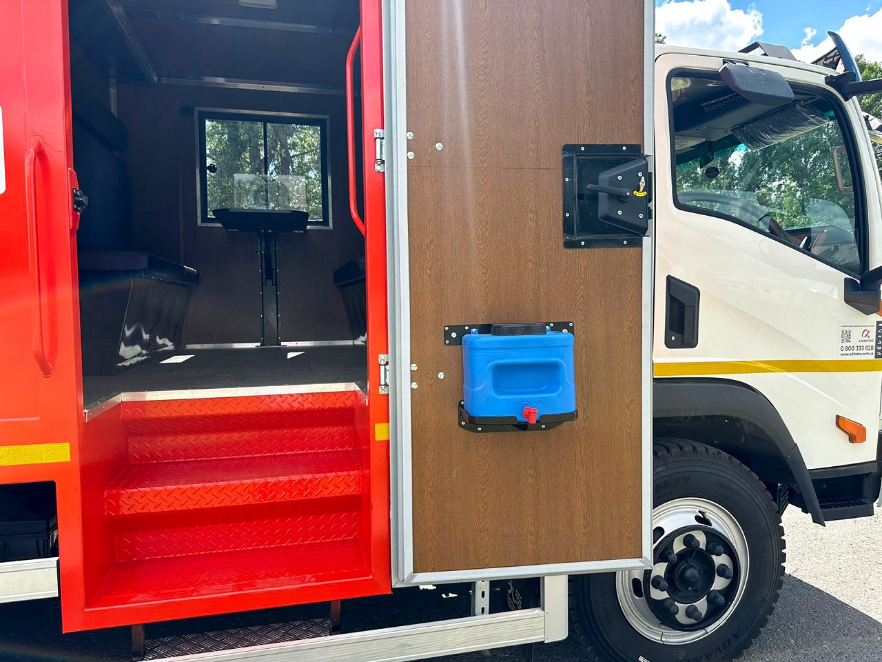 По правому борту (сторона пасажира), біля задніх дверей, передбачена ніша для перевезення одного кисневого балона, обладнана механізмом підйому-опускання назовні. По лівому борту (сторона водія), біля задніх дверей, передбачена ніша для перевезення одного пропанового балона, обладнана механізмом підйому-опускання назовні.
