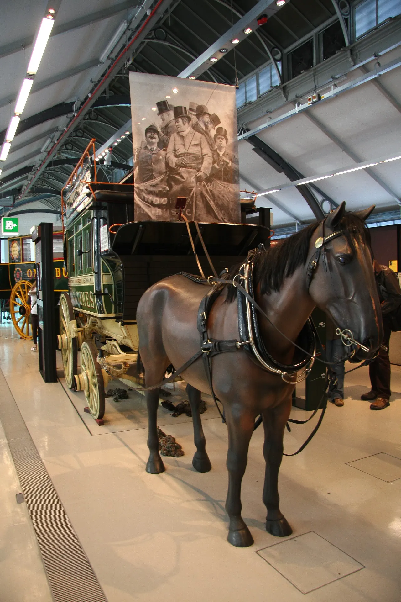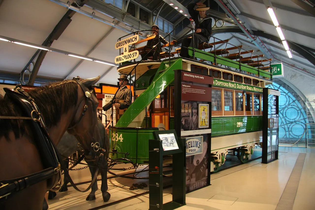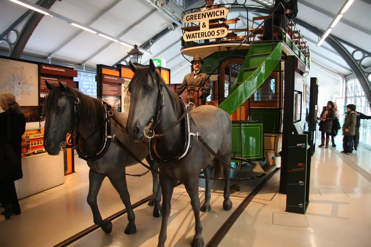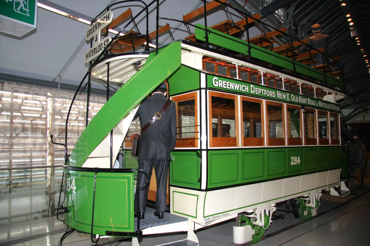 Ще одним предком сучасного трамвая, та, мабуть, і автобуса є конка – пасажирський вагон, що пересувається рейками у кінській упряжці. В експозиції можна побачити так званий кінний трамвай (horse tram), причому двоповерховий, збудований майстром Стефенсоном у 1882 році.