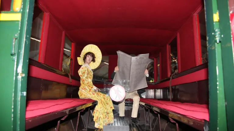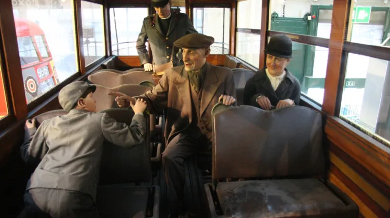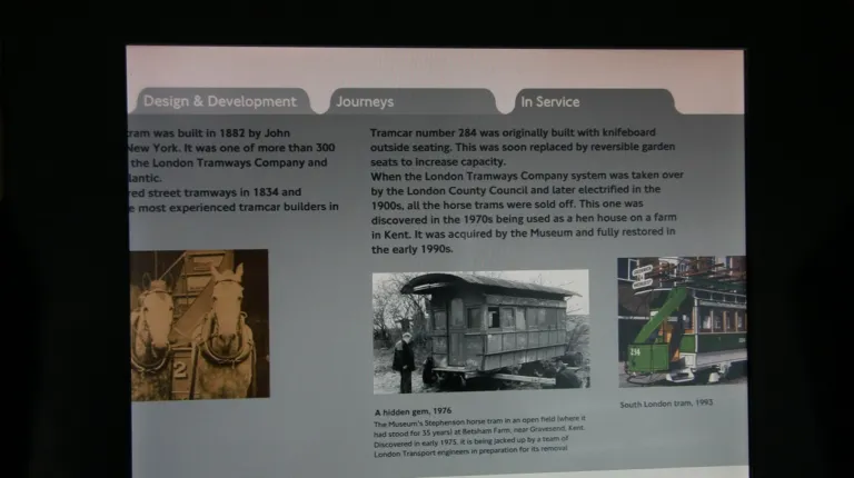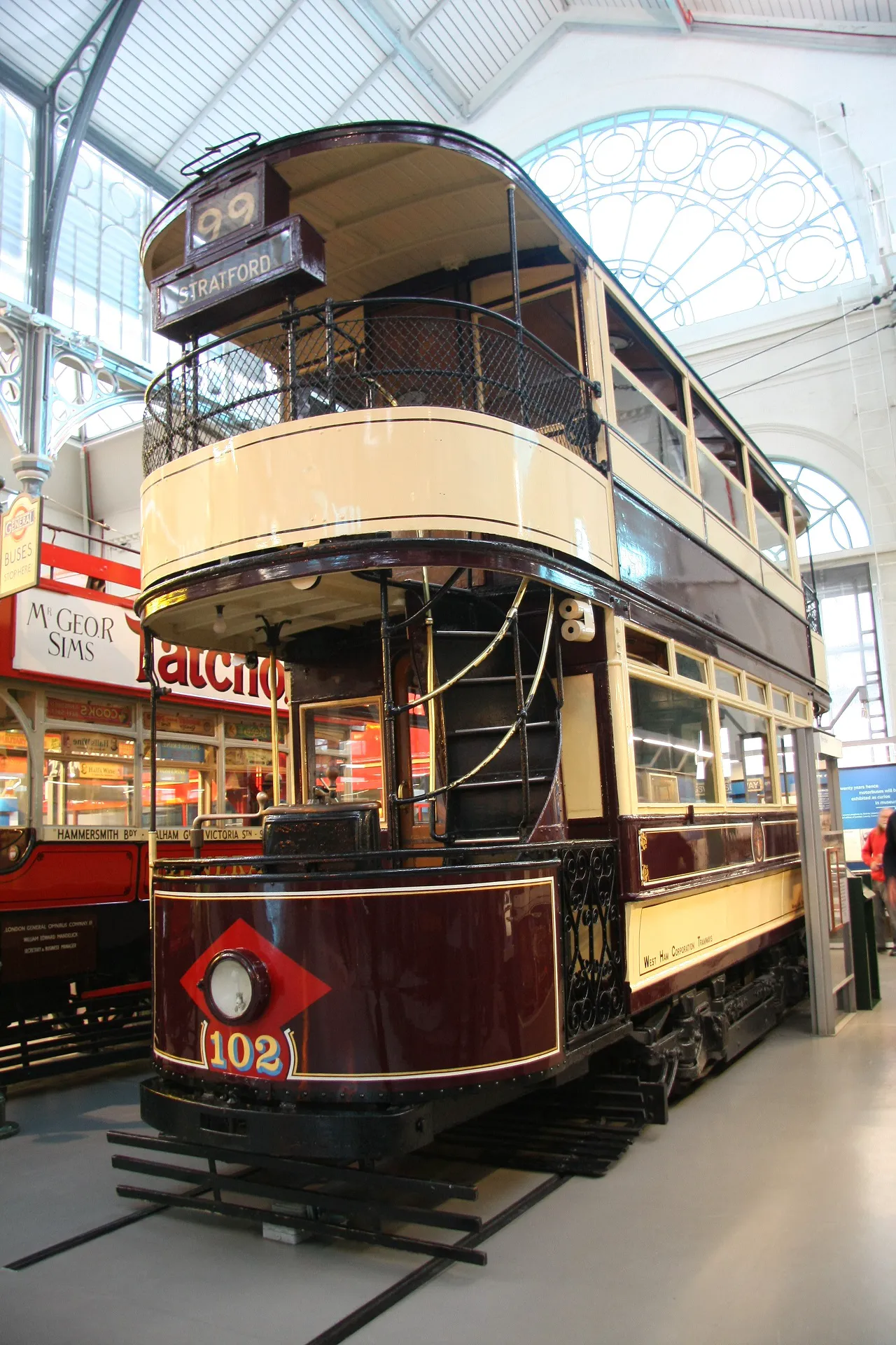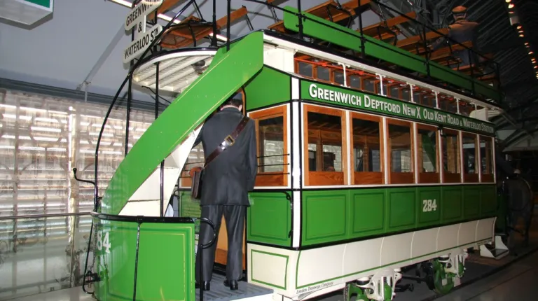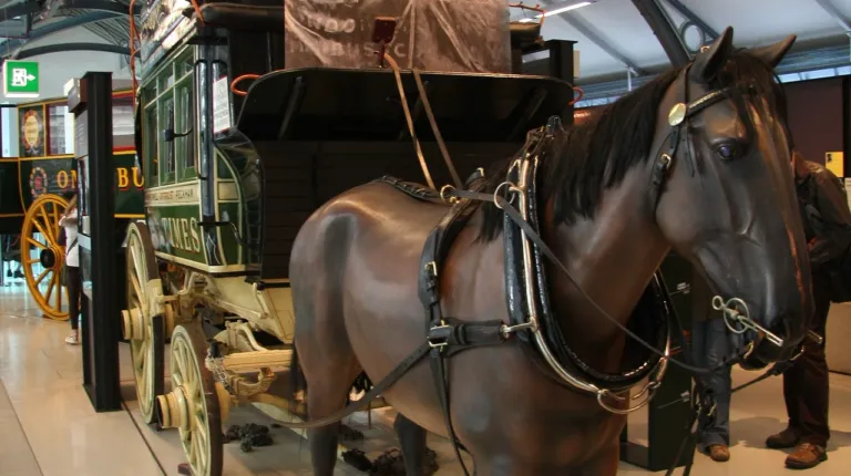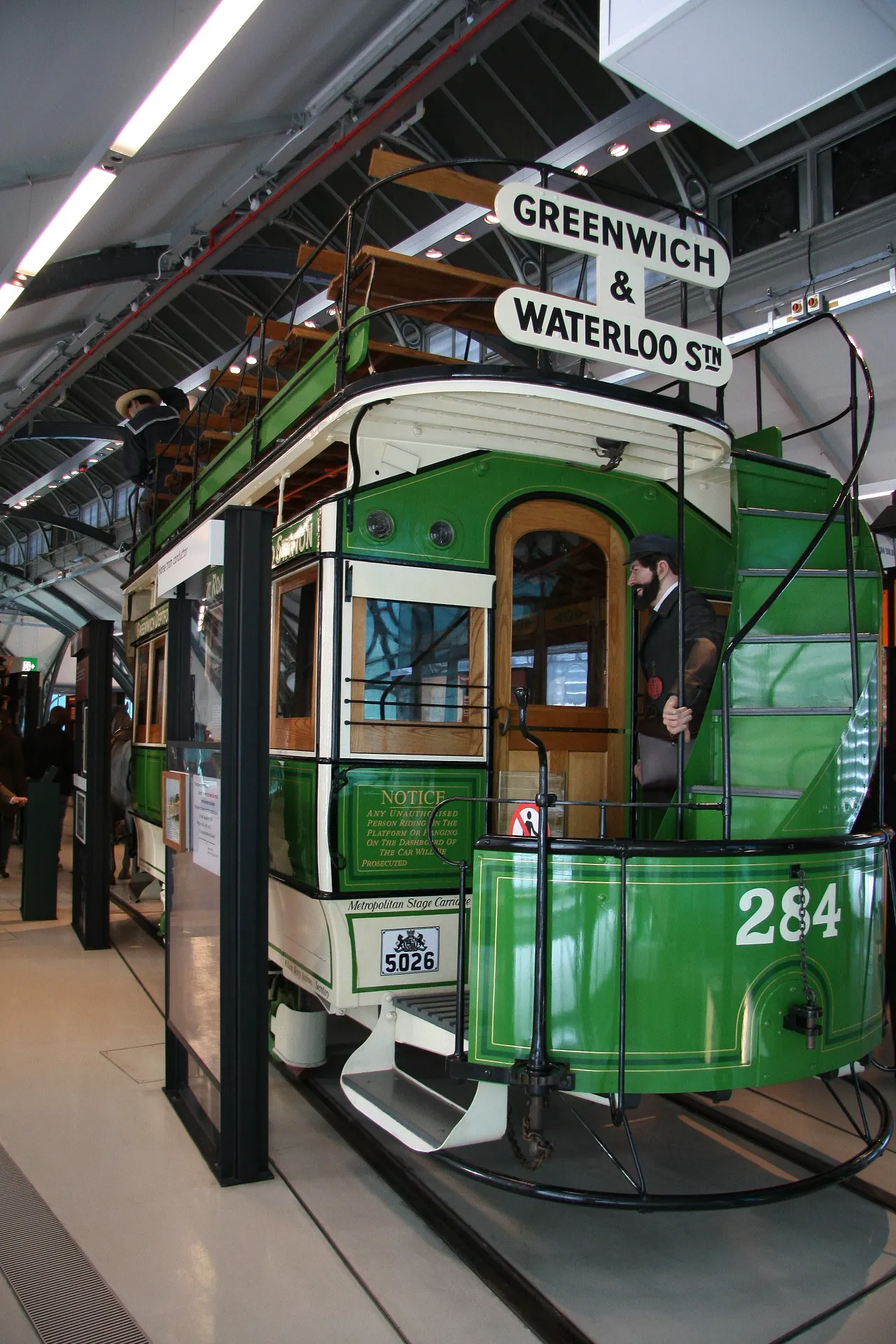 Ще одним предком сучасного трамвая, та, мабуть, і автобуса є конка – пасажирський вагон, що пересувається рейками у кінській упряжці. В експозиції можна побачити так званий кінний трамвай (horse tram), причому двоповерховий, збудований майстром Стефенсоном у 1882 році.