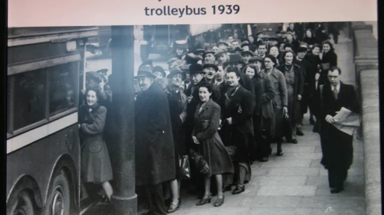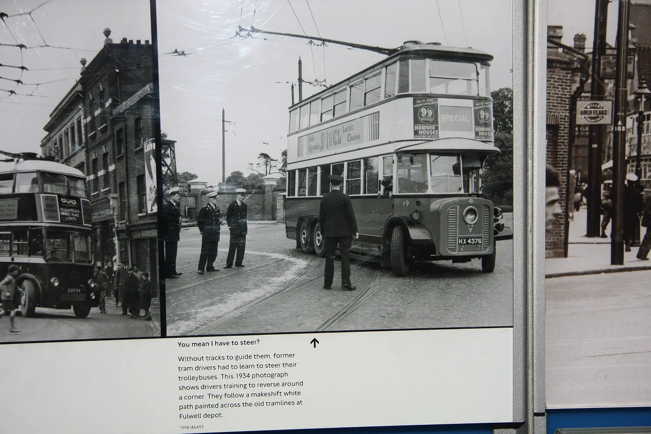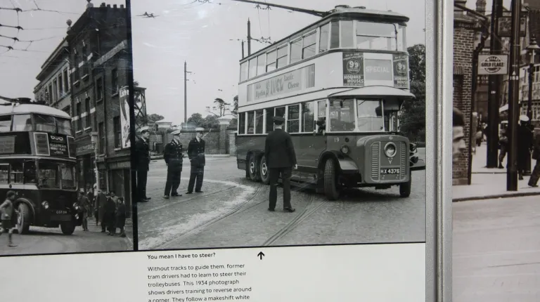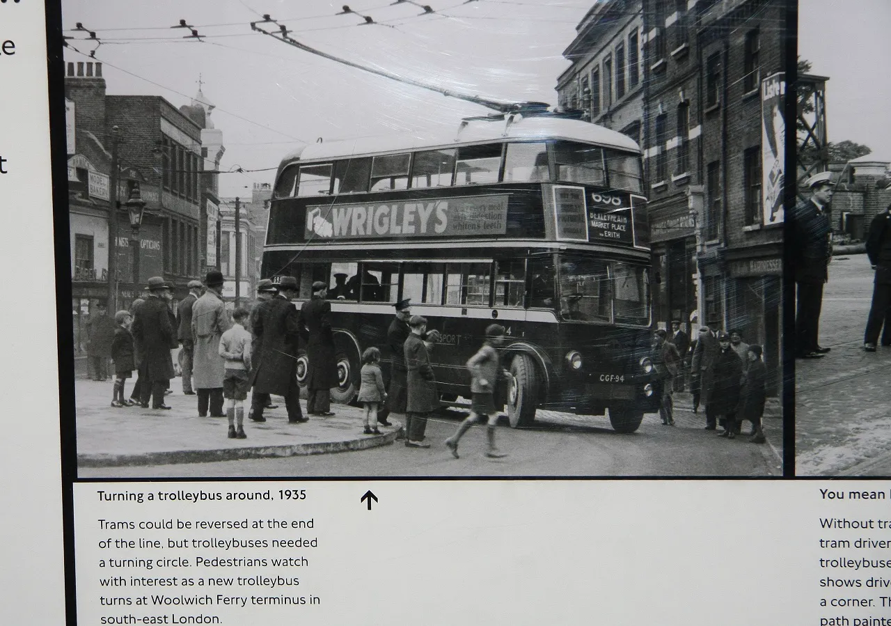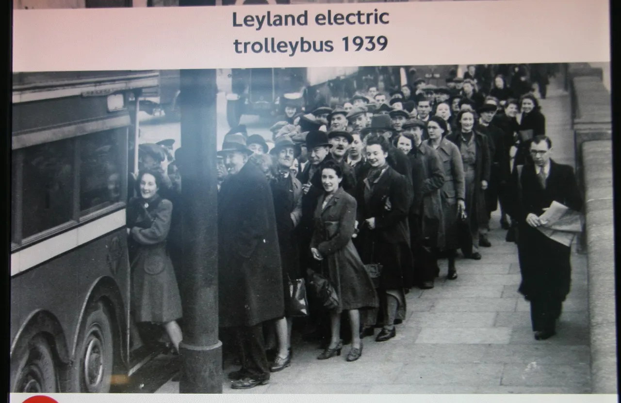 Пліч-о-пліч з автобусом розмістився одноліток – тролейбус фірми Leyland. На початку 30-х років цей вид транспорту став широко поширеним в Англії та успішно конкурував з автобусами. Справа в тому, що на Британських островах не було своєї нафти, а привізний бензин коштував дорого. Зате надміру було кам’яного вугілля, на якому працювали численні електростанції, виробляючи дешеву енергію.