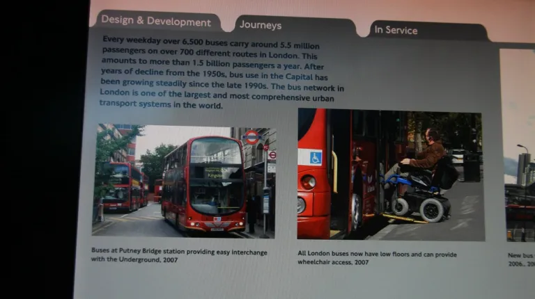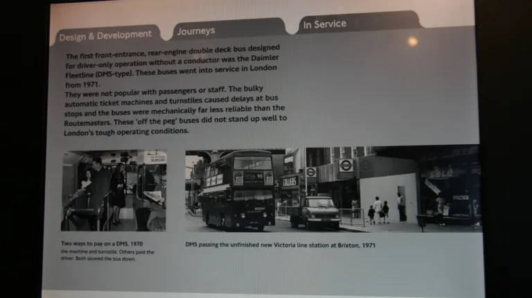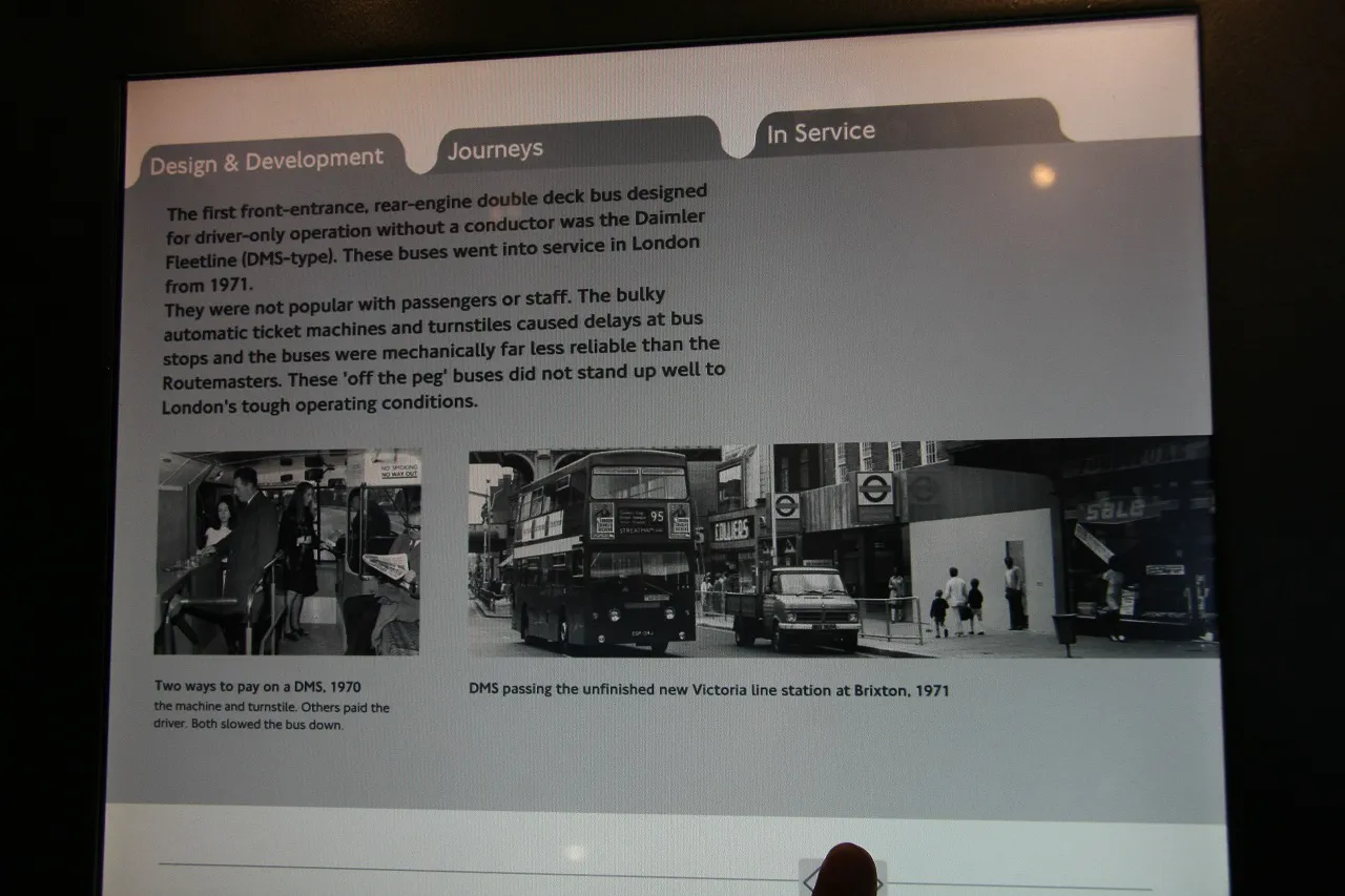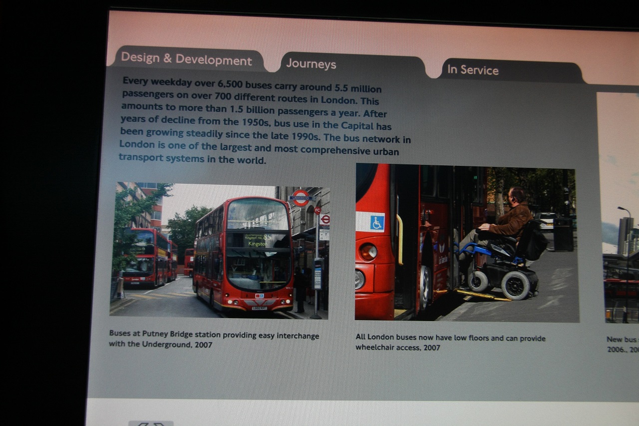 Ті, хто відвідував його раніше, пам’ятають, як буквально один на одному там розташовувалися аж ніяк не мініатюрні експонати. Багато з них навіть не можна було нормально розглянути. Нині ж частину експонатів прибрали до запасника – Museum Depot, а решта – найцікавіші – становлять естетично завершену композицію. Зі всіх експонатів, представлених у музеї (а тут є і трамваї, і вагони метро, і паровози), насамперед зупинимося на автобусах та їхніх предках.