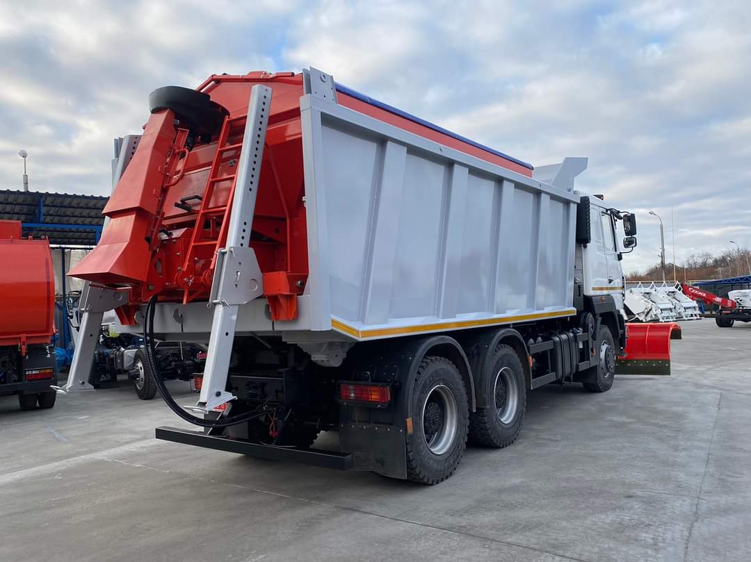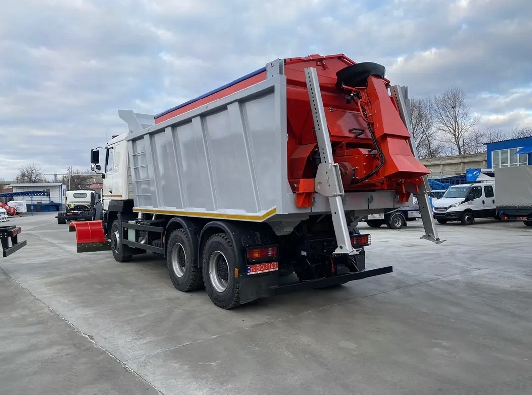 Машина зі змінним обладнанням на базі самоскида оснащена бункером для піско-соляної суміші об’ємом 8,5 куб.м.