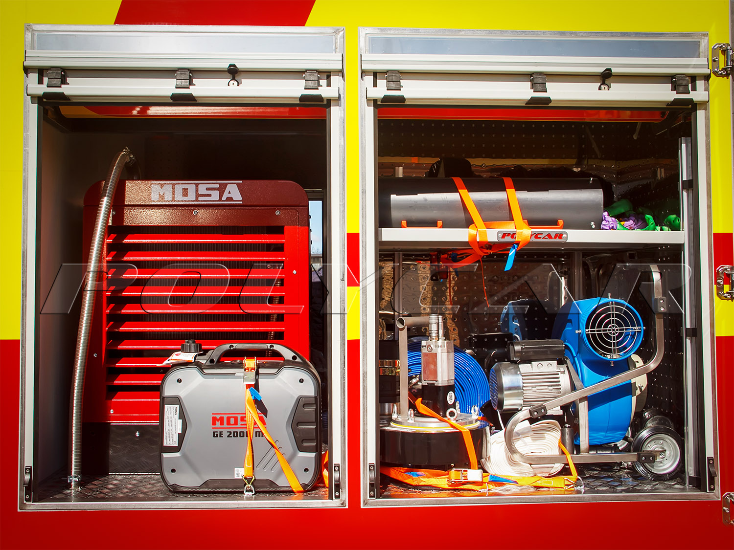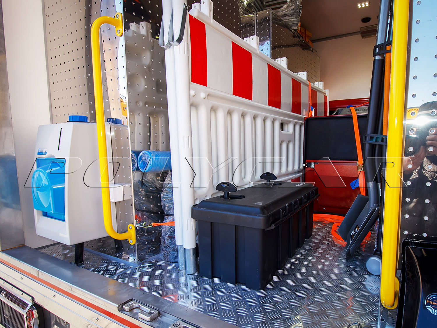 Останній призначений для живлення набору гідравлічного інструменту, що входить у комплектацію: відбійного молотка, шліфувальної машини та шлангової помпи. А симетричні відсіки в кормі використовуються для перевезення кисневих та пропанових балонів – з механізмом навантаження та регулюванням жорсткості фіксації.