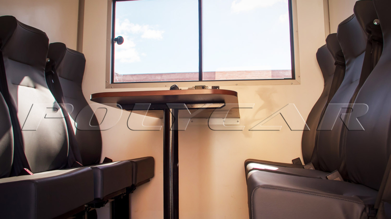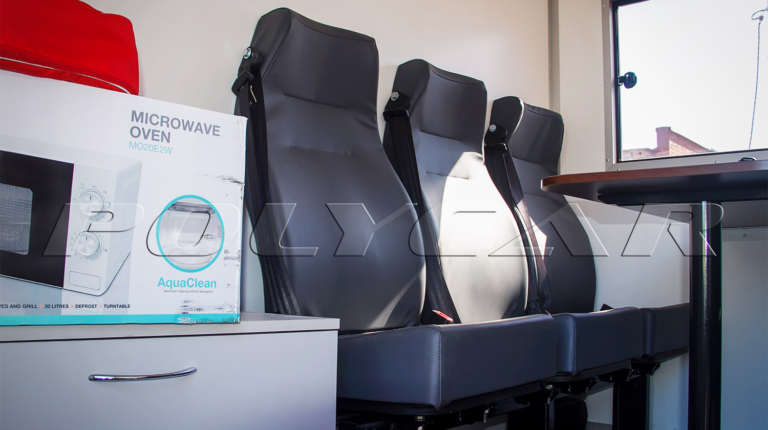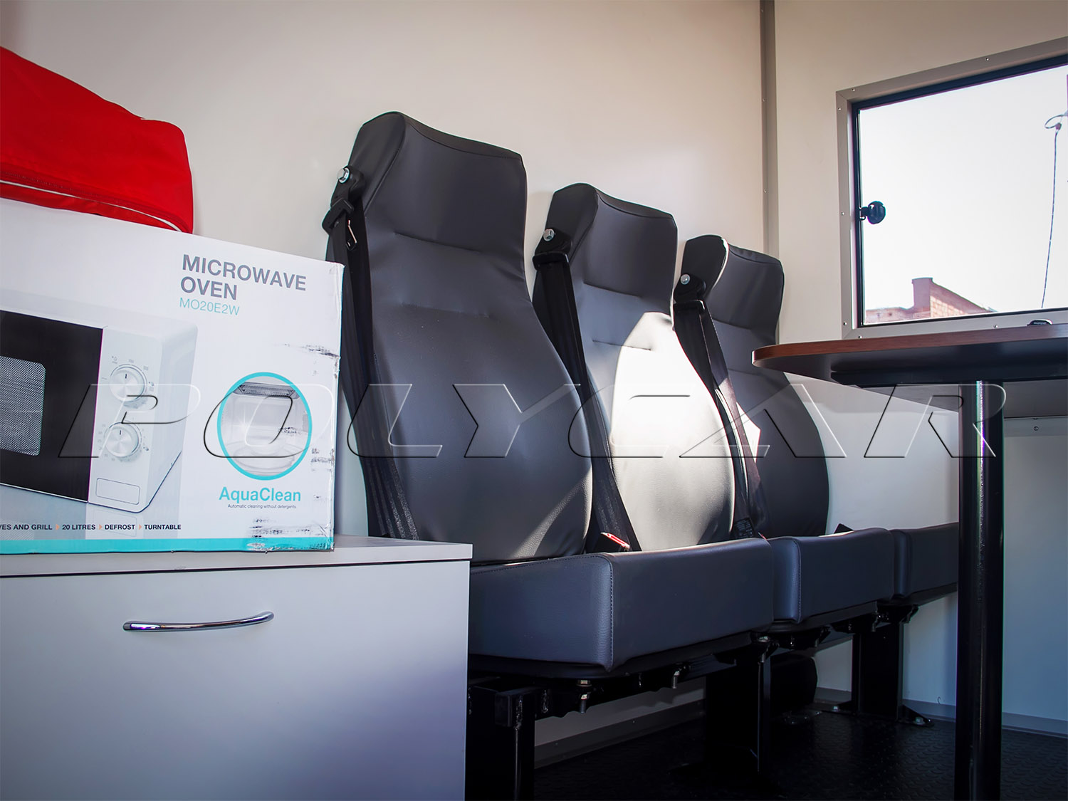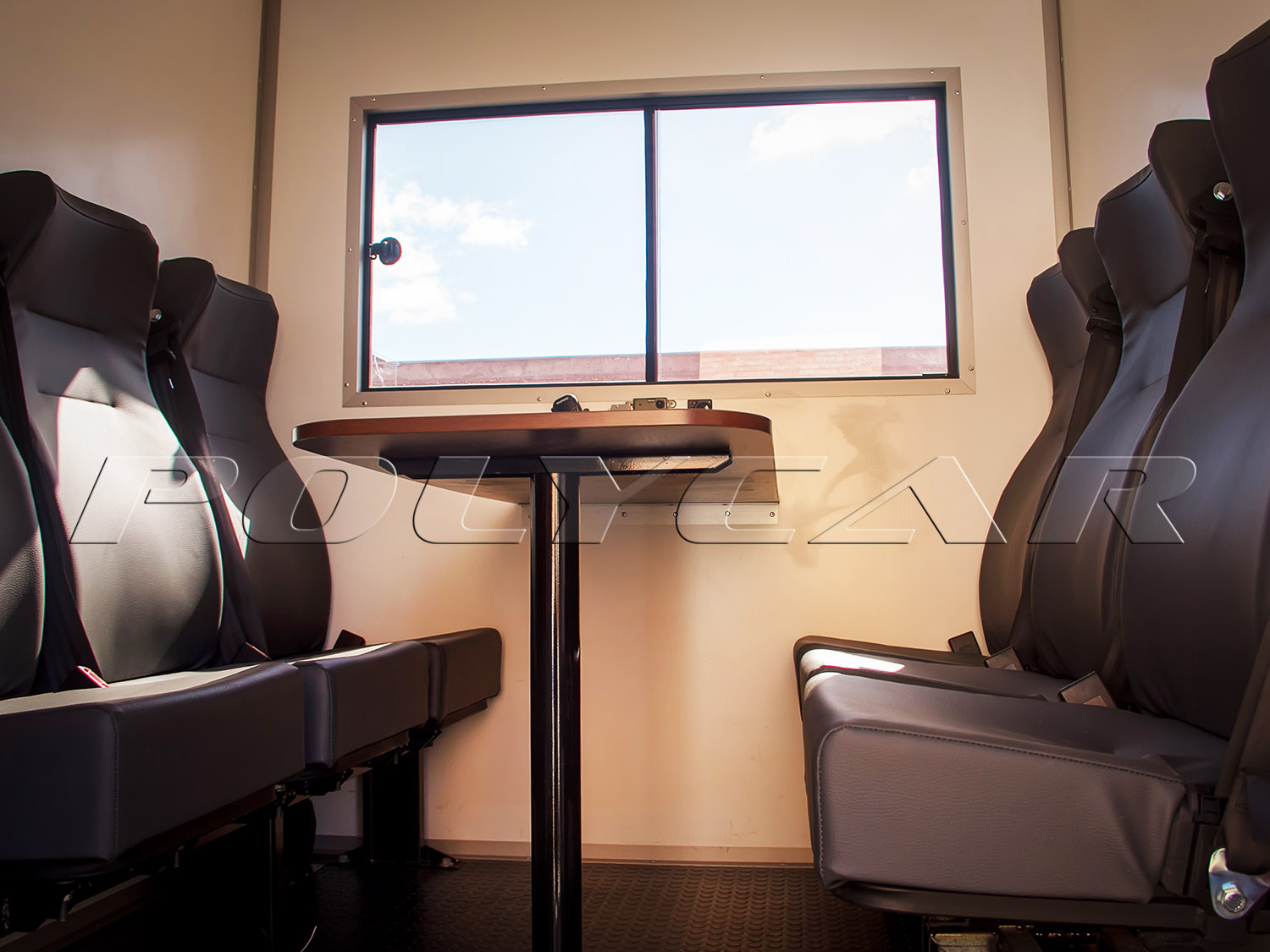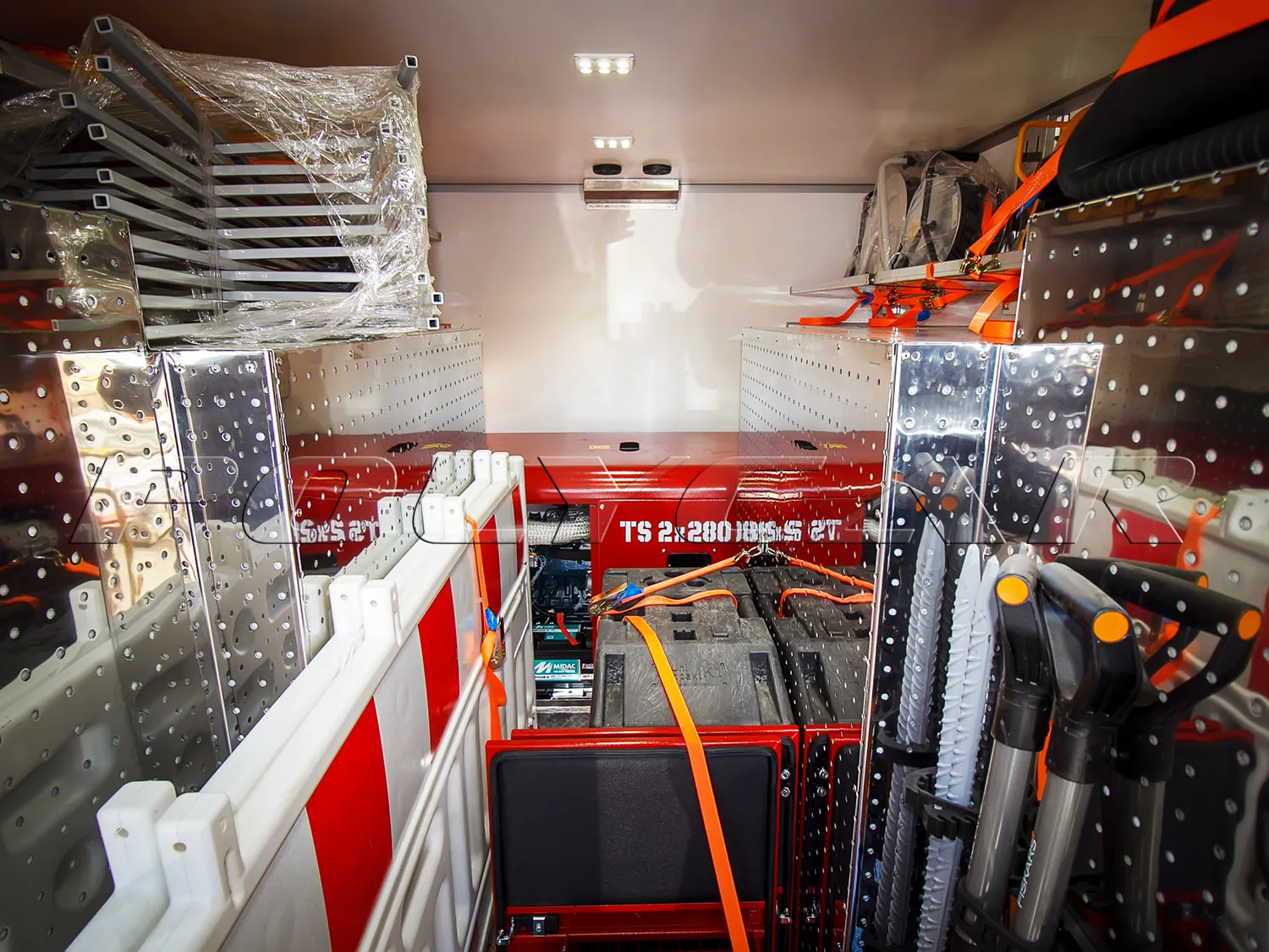 Надбудова поділена на два відсіки. Перший із них, пасажирський, для ремонтної бригади, обладнаний шістьма сидіннями з триточковими пасками безпеки. Тут є переговорний пристрій з кабіною водія, автономний обігрівач, кондиціонер, а для більшої зручності – мікрохвильова піч та електрочайник.