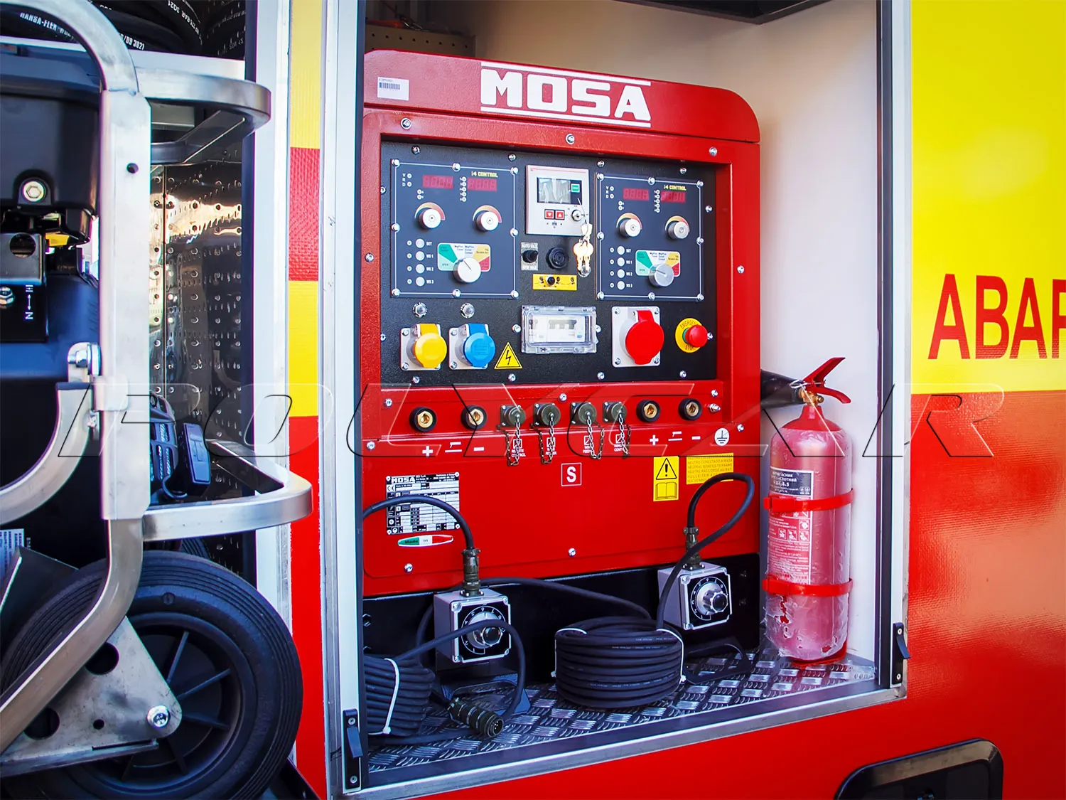 Другий відсік – технологічний, призначений для спеціального устаткування. У відсіках ліворуч по борту з доступом зовні встановлені двопостовий дизельний зварювальний апарат Mose TS (Італія), бензиновий генератор Mose Ge 2200, а також поршневий компресор Bostitch (США).