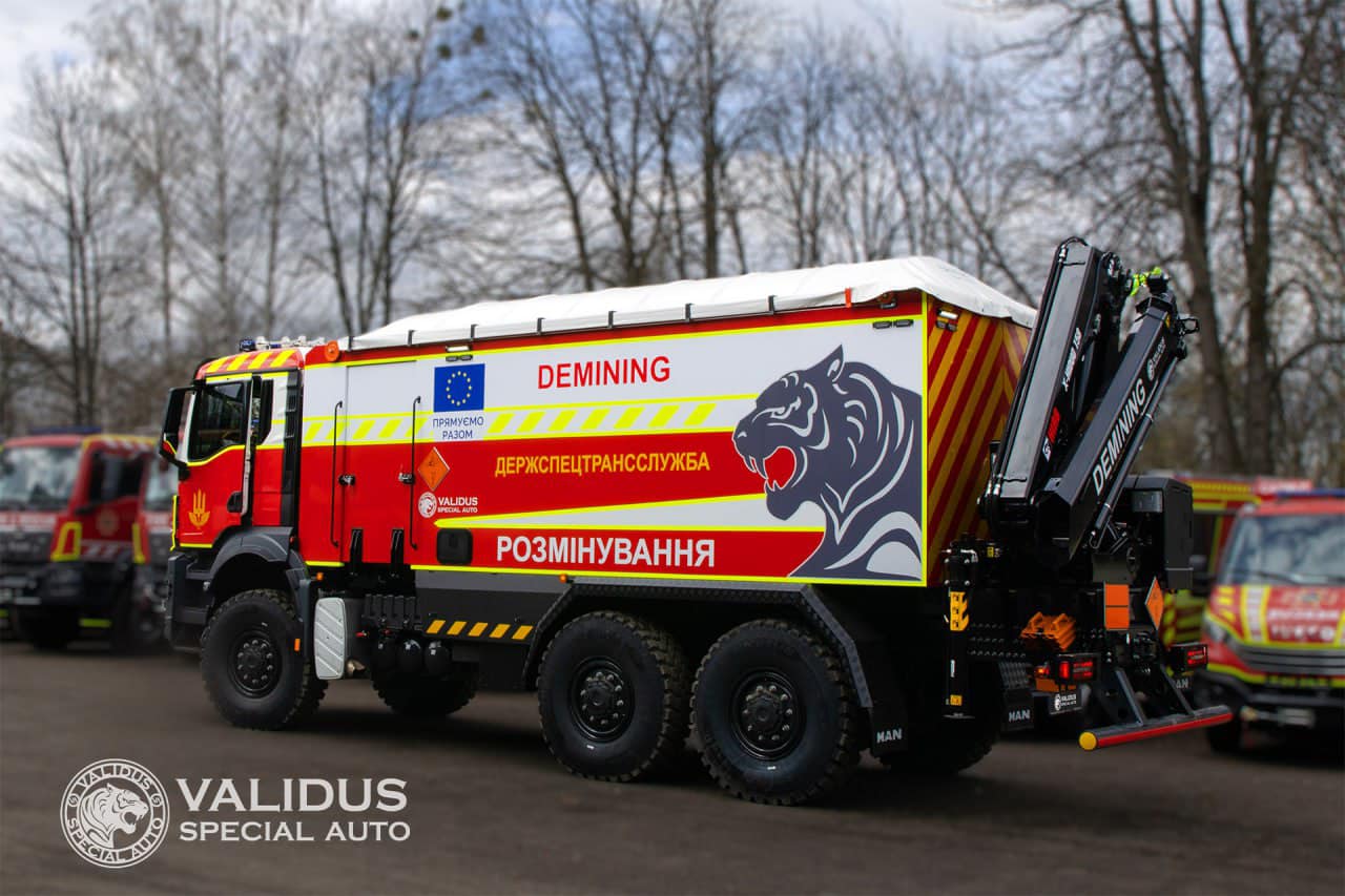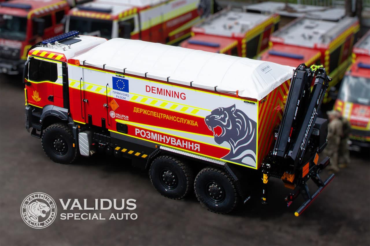 Для розмінування українських територій компанія «Валідус-Спецавто» виготовила три піротехнічні машини важкого типу ПМ-В. Два автомобілі передано для структурних підрозділів ДСНС України. А один — для Державної спеціальної служби транспорту. Як відомо, один із автомобілів ПМ-В працюватиме невдовзі для розмінування Харківщини, інші також очищатимуть території у різних куточках нашої держави.