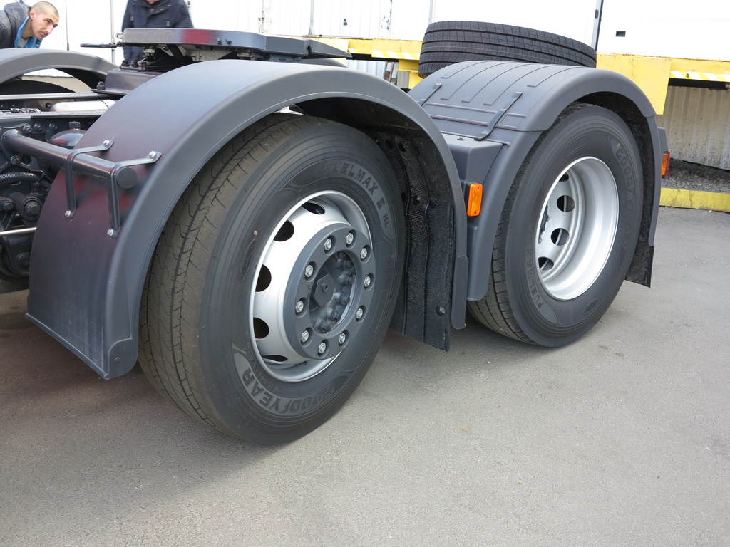 Тягач укомплектован многими электронными помощниками, которые очень актуальны на сегодня: EBS + BAS (электронноуправляемая тормозная система + система помощи при торможении), ESP – электронная система стабилизации, HILL HOLDER – система, которая удерживает автопоезд на склоне и позволяет водителю безопасно тронуться с места. Фары головного света – BE XENON – обеспечивают водителю улучшенную видимость, повышая безопасность и уменьшая нагрузку на водителя. Имеются дневные ходовые огни – DRL.