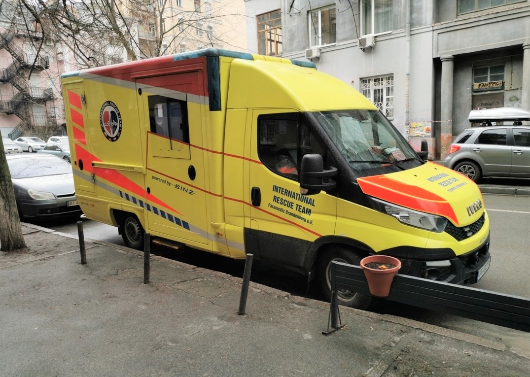 Сьогодні в Україну завозяться автомобілі швидкої медичної допомоги різних марок, які купуються волонтерами або передаються як гуманітарна допомога різними міжнародними організаціями. Днями в Києві було помічено одного з них, який належить International Rescue Team з Бранденбурга. Він побудований на шасі IVECO Daily, яке нечасто зустрічається у нас в якості «швидкої». Кузовну надбудову для нього виготовила іменита німецька компанія Binz.