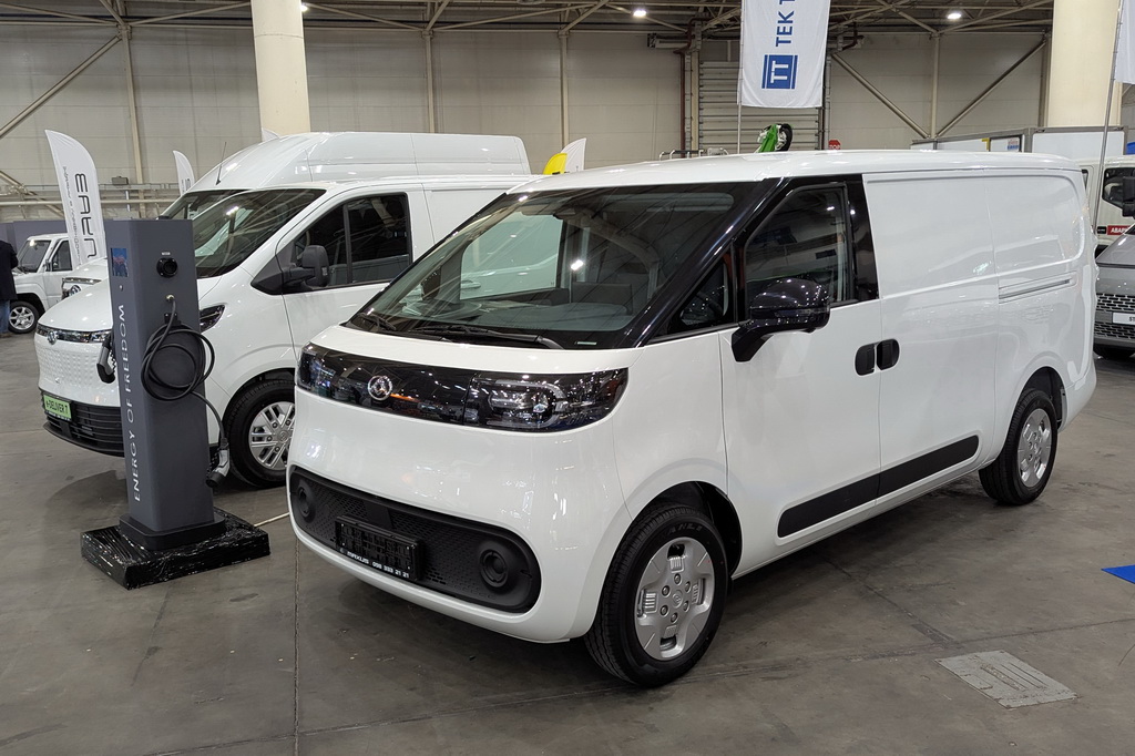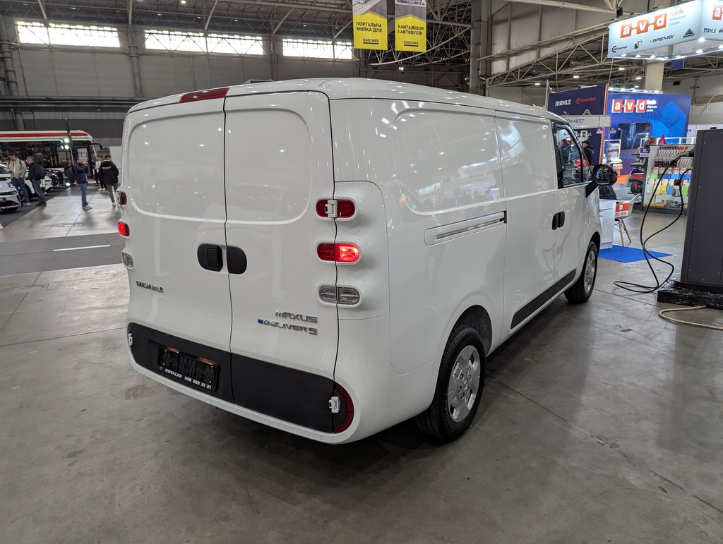 На стенді також представлений вже відомий в Україні найбільший представник лінійки електричних фургонів Maxus – модель eDeliver 9. При габаритній довжині 5940 мм він має вантажний відсік об’ємом 13 кубометрів. Вантажопідйомність складає 1200 кг за повної маси 3500 кг. Машина укомплектована батареями ємністю 88 кВт.год, які живлять електродвигун потужністю 147 кВт. Запас ходу у міському режимі сягає 353 км, а змішаному – 296 км. Максимальна швидкість становить 100 км/год.