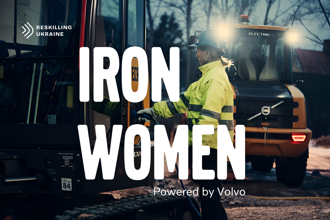 У рамках проекту Reskilling Ukraine запускається унікальна програма Iron Woman, спрямована на здобуття жінками професій машиністок екскаваторів та водіїв фронтальних навантажувачів. Вона організована компаніями Volvo CE, ETS Group, а також шведською некомерційною організацією Beredskapslyftet.