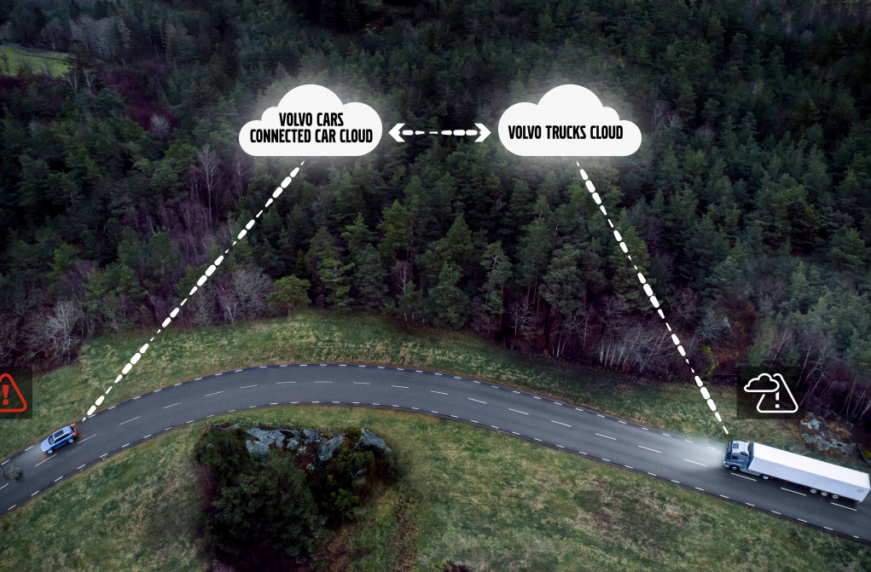 Сервис Connected Safety позволяет легковым автомобилям и грузовикам Volvo, подключенным к системе, предупреждать друг друга об опасных ситуациях на дороге. Это становится возможным благодаря обмену данными о безопасности между облачными сервисами Volvo Trucks и Volvo Cars.