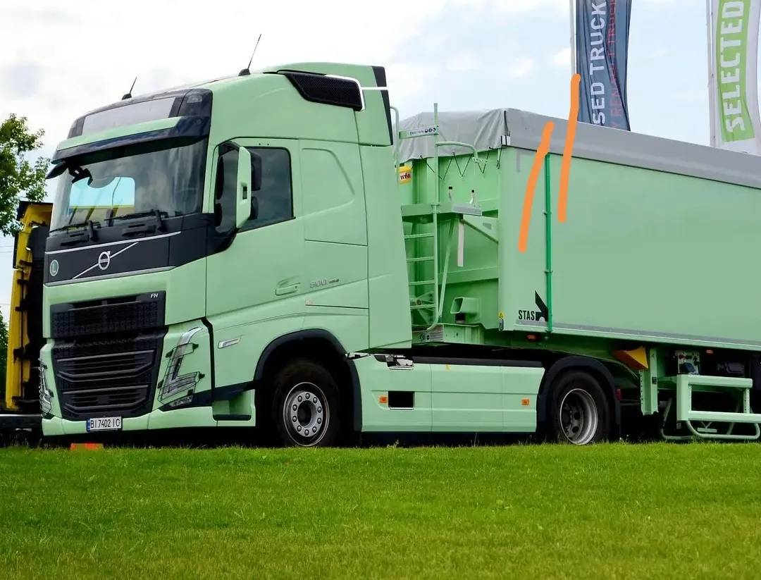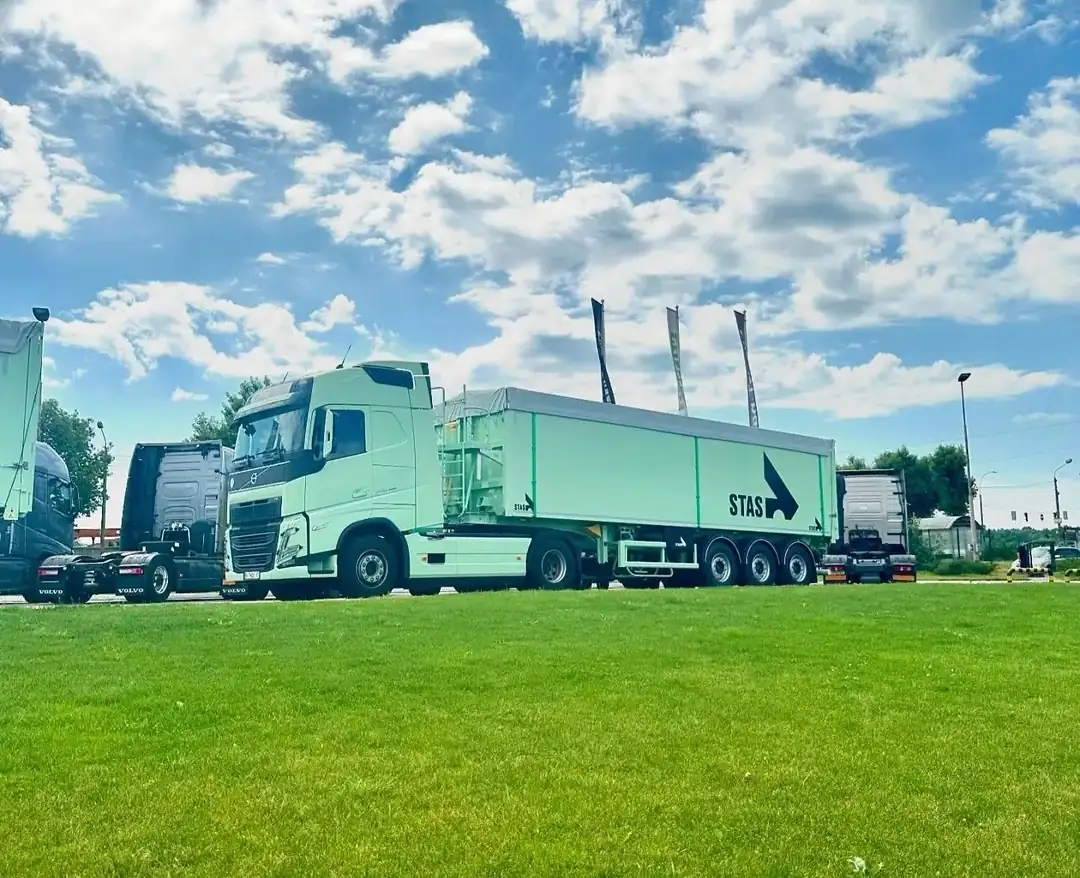 На днях клієнту з Полтави передано чергову партію машин Volvo FH 500 з самоскидними напівпричепами-зерновозами бельгійської марки Stas. Всього було замовлено п'ять таких автопоїздів.