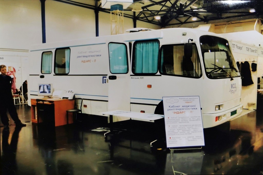 Також відзначимо автобус А091С “Богдан” як кабінет медичної радіодіагностики “Індіарс-П” . Переобладнання виконане харківським виробничим підприємством “Квант”.