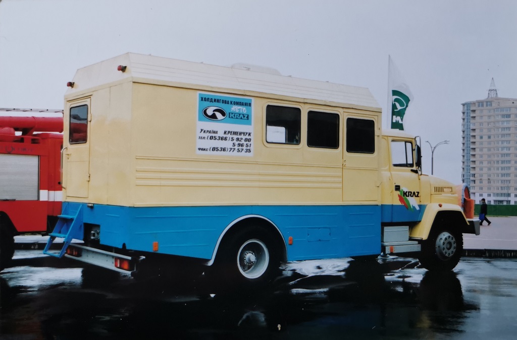 Також відзначимо вахтовий автомобіль КрАЗ-5124Р2-Д10 із фургоном на 15 місць. У комплектацію входять кондиціонер Webasto CC8, повітряний обігрівач Webasto HL 90, умивальник, а також переговорний пристрій із кабіною водія. Споряджена маса машини становить 8,8 т, а повна – 13,3 т. Двигун 240 к. с. розганяє автомобіль до 80 км/год.