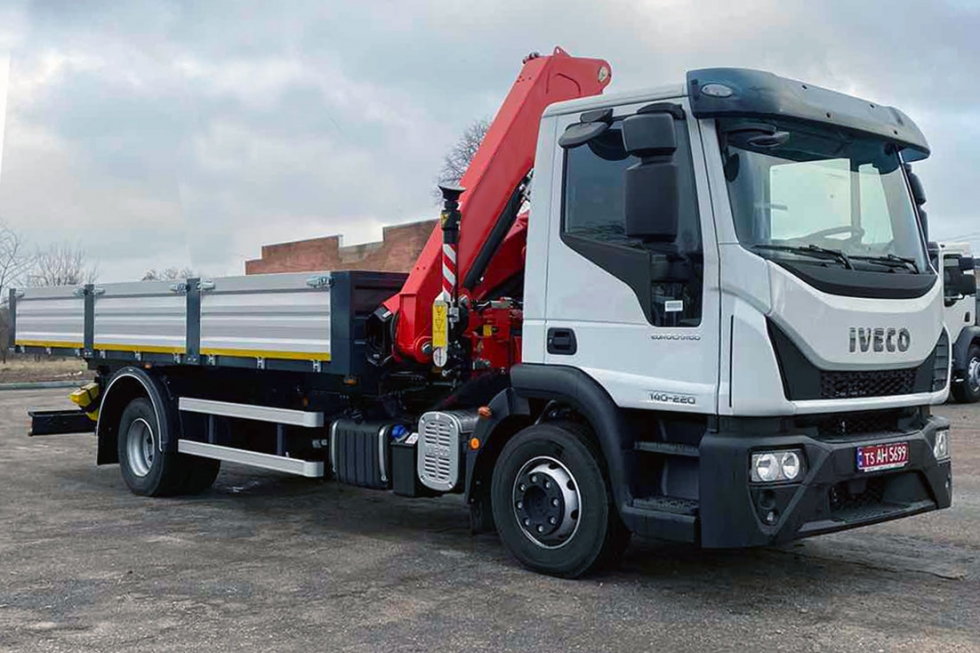 Середньотоннажні автомобілі IVECO Eurocargo продовжують мати попит на вітчизняному ринку. Нещодавно Завод спецтехніки «Техкомплект» виконав постачання бортового автомобіля з шарнірним краном-маніпулятором TK-IV-E-КМ-155+КМУ для свого партнера – компанії АМАКО.