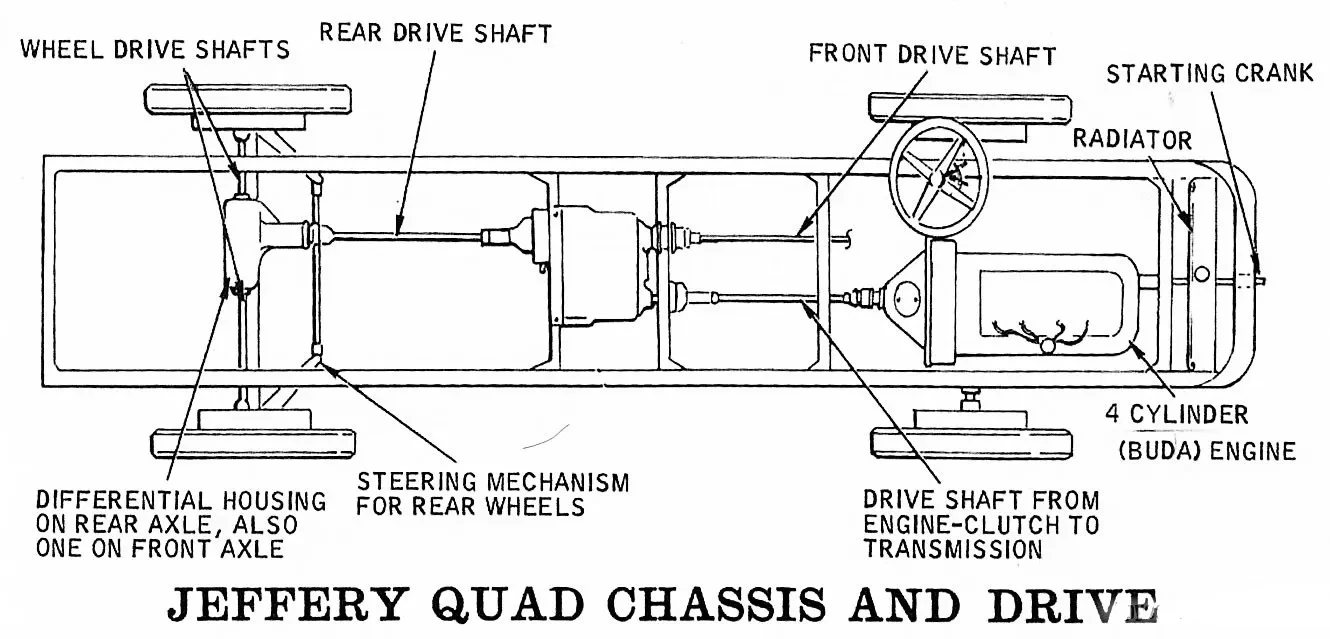 Модель отримала назву Quad («Мураха»). Вантажопідйомність її становила 2 тонни. Бензинова "четвірка" фірма Buda розвивала 32 - 36 к. с. У трансмісії крім 4-ступневої КП вже була двоступенева роздавальна коробка. Привід на обидва мости був карданним. Максимальна швидкість сягала 56 км/год. Вже першого року виробництва виготовили 5,5 тис. таких вантажівок.