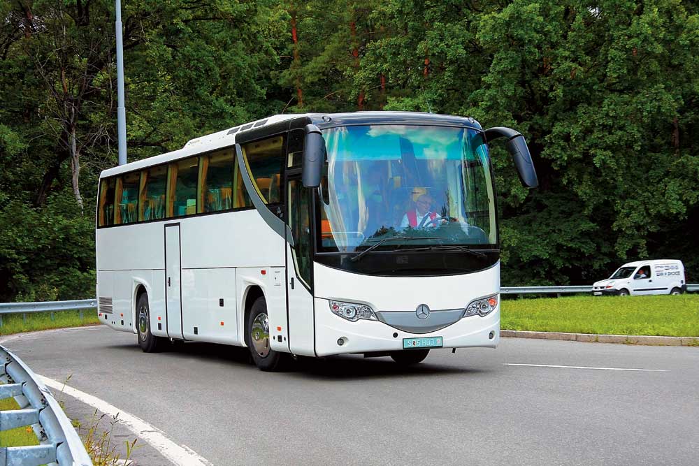 Белоснежный лайнер не зря украшен эмблемой с трехлучевой звездой: вся его механическая часть – двигатель, трансмиссия, мосты – поставляется непосредственно с бразильского завода Mercedes-Benz. А вот кузов сделан египетской компанией MCV – лидером на рынке Ближнего Востока по производству автобусов всех классов. Она сама проектирует кузова, полностью изготавливает их и затем осуществляет окончательную сборку машин. После недавнего расширения завода в Египте компания может изготавливать ежегодно до 6000 автобусов.