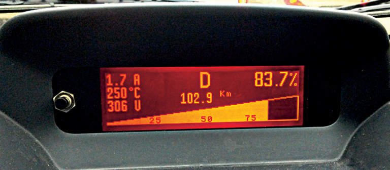 Крім того, є свої нюанси і при підключенні до побутової мережі. Електроніка Berlingo Venturi дає змогу заряджати батарею в трьох режимах – струмом у 16, 10 або 7 ампер. Для умовно швидкої зарядки, звісно, слід встановити режим 16 А. Але для цього потрібно бути впевненим, що побутова мережа і переноска-подовжувач витримають такий струм. Ми, наприклад, використовували 50-метровий подовжувач, який витримує струм 16 А (зазначено на котушці подовжувача), але при цьому провід необхідно повністю розмотати. Спочатку ми про це не знали, тому після однієї нічної зарядки на 16 А котушку трохи повело. Крім того, слід бути впевненим у хорошій струмопровідності і розеток, і домашньої проводки. Якщо ви не впевнені у них, після підключення до мережі через 15-30 хвилин варто спробувати ступінь нагріву розетки. Якщо вона гріється, то краще переключити машину на режим зарядки на меншому струмі (10А або 8А).