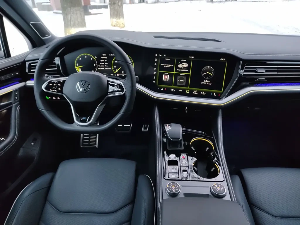 Як і раніше, Volkswagen Touareg пропонує дуже просторий салон та багажник (810 літрів). Для пасажирів місця вистачає і по довжині, і по висоті. Передні сидіння, звісно, можуть похизуватися більшою кількістю фішок, адже тут і підігрів і вентиляція сидінь, і функція масажу. А ось у задніх пасажирів є тільки регулювання по довжині, кута нахилу спинки та підігрів сидінь. Втім, якщо бажаєте додати сюди ще й окремий клімат-контроль, то слід звернути увагу на версію R-Line Platinum+ - там він є.