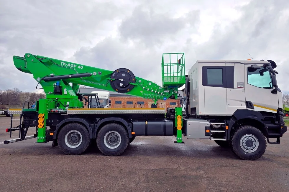 TK-AGP-32 має робочу висоту підйому до 31,5/31,9 м і максимальний виліт 20/25,5 м. Вантажопідйомність корзини становить 300/400 кг.