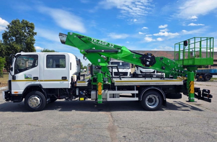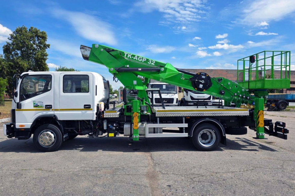 Завод спецтехніки «Техкомплект» виготовив для свого партнера – компанії «Будшляхмаш» автогідропідйомник TK-AGP-32 на шасі JAC N120. Зазначимо, що підприємство вже не перший рік випускає автовишки південнокорейської марки DASAN на різних шасі. У даному випадку для моделі DASAN CT320EX/DS320 вперше використали базу JAC N120 з дворядною, екіпажною кабіною.