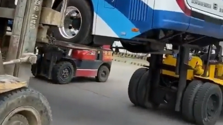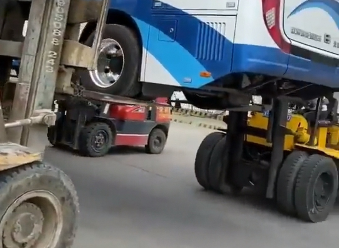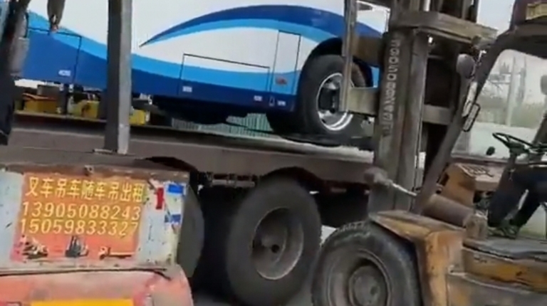 Китайські компанії нарощують виробництво електробусів, як кажуть, не щоднини, а щогодини. Їх на місцевому ринку вже стільки, що для доставки готових машин замовникам просто не вистачає спеціального транспорту. Тому у справу йдуть звичайні напівпричепи-контейнеровози. Проте постає питання, як же закотити на них автобус, а потім розвантажити? Все дуже просто. Потрібно взяти чотири досить потужні вилкові навантажувачі і посадити на них сміливців. Що з цього вийде добре показано на відео.