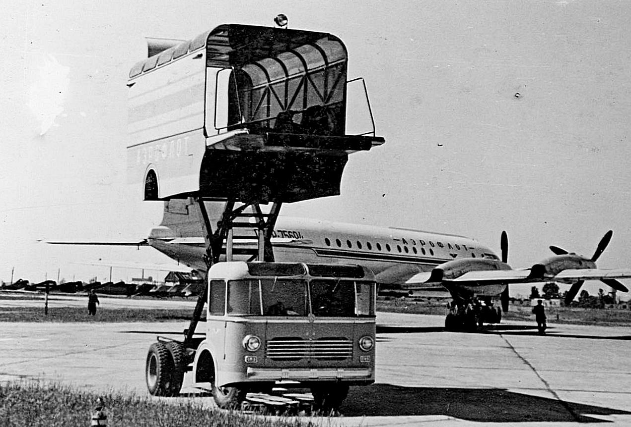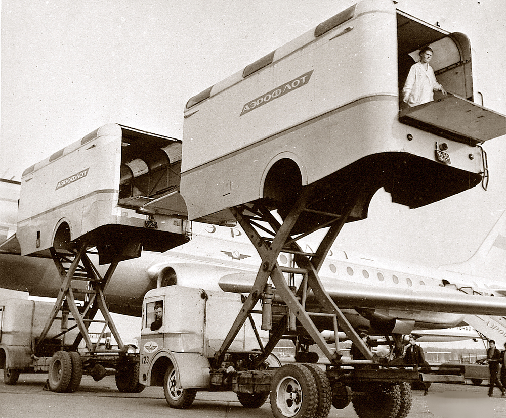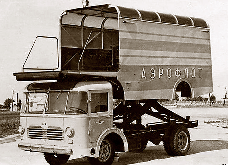 Це була машина АЛ-2 “Аерофлот”. Вона призначалася для швидкісного завантаження на літак продуктів харчування пасажирів та їхнього багажу, а також поштових та інших вантажів. Бурхливий розвиток цивільної авіації та нова якість обслуговування на борту викликали потребу саме в таких спецмашинах. І АЛ-2 була однією із перших у країні.