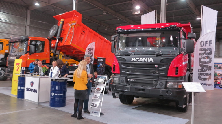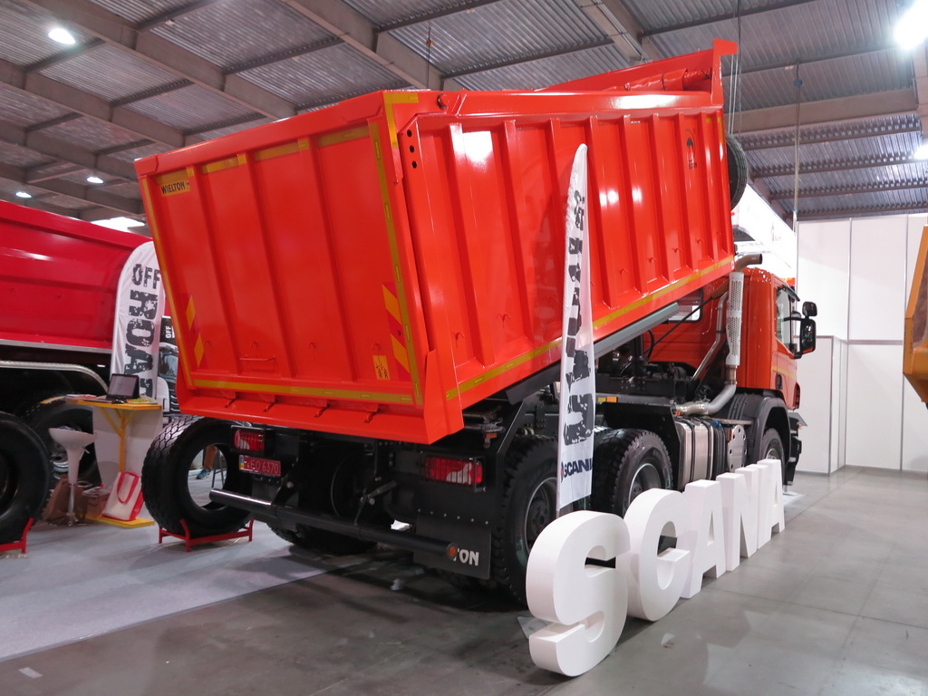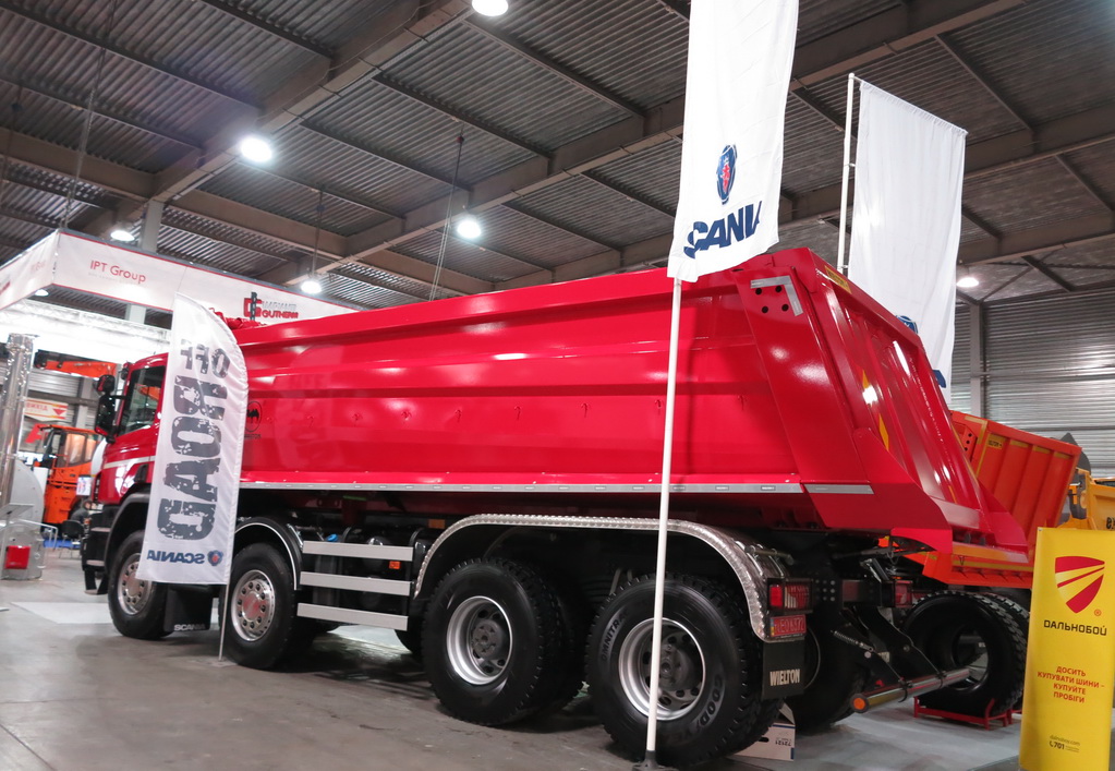 Вантажівки Scania представила компанія «Сканія Україна». Це тривісна модель Scania P360 (6х4) із 18-кузовом Wielton. Повна маса автомобіля може досягати 41 т. Машина оснащена 13-літровим турбодизелем Євро-5, потужністю 360 к.с. і 12-ступінчастою коробкою передач з автоматичною системою перемикання Scania Opticruise.