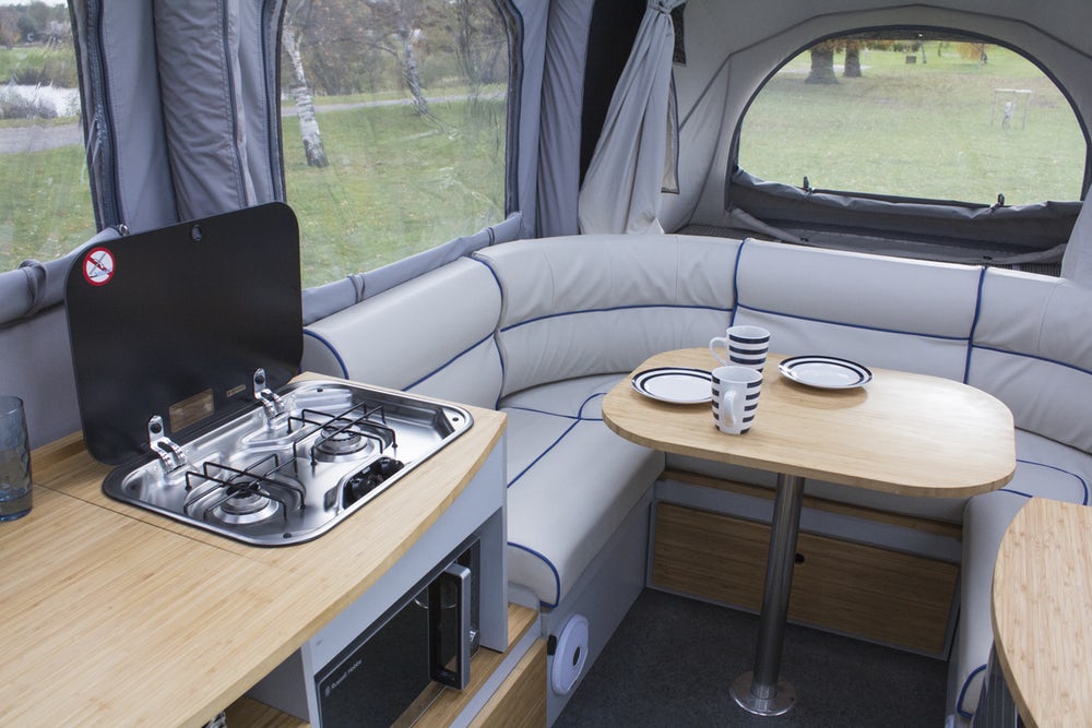 Компания Opus Camper прославилась на весь мир уникальными прицепными кемперами, которые раскладываются в комфортабельные жилые палатки всего за 90 секунд. Изюминка прицепов – запатентованная система Air Opus, представляющая собой мощный насос, который, собственно говоря, и надувает домик для туристов.