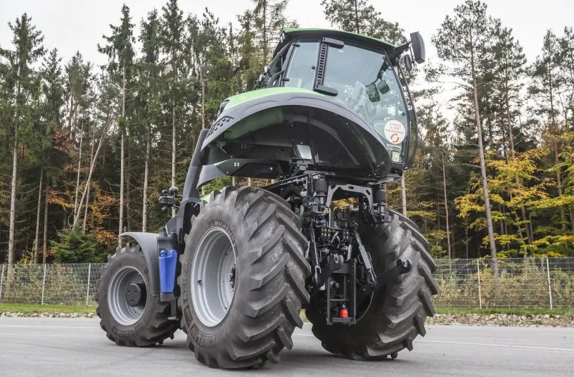 Колесный трактор Deutz TTV 9340 Agrotron, презентованный на выставке Agritechnica 2017 в Ганновере, в транспортном положении ничем особенным не выделяется. Однако стоит оператору взяться за джойстик, как трактор превращается в трансформер.