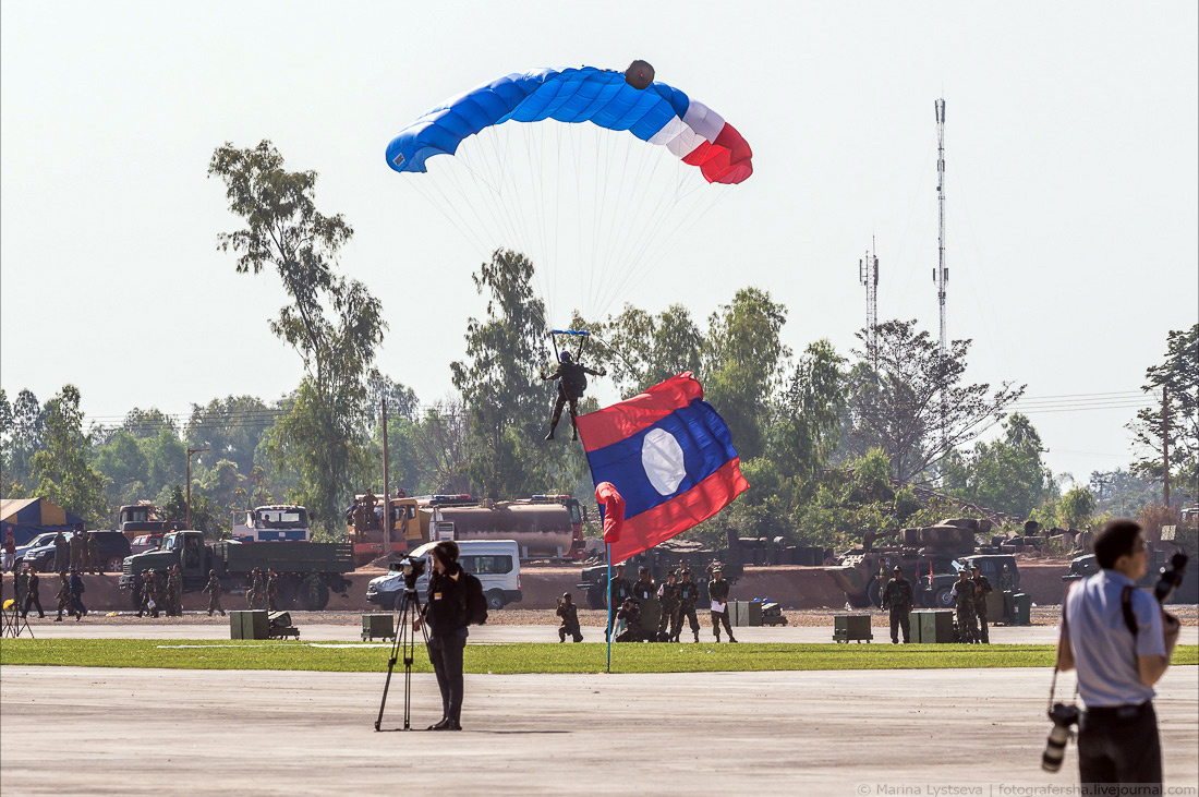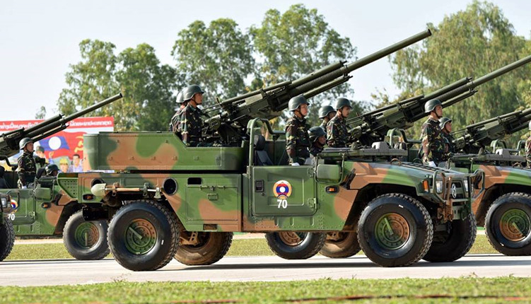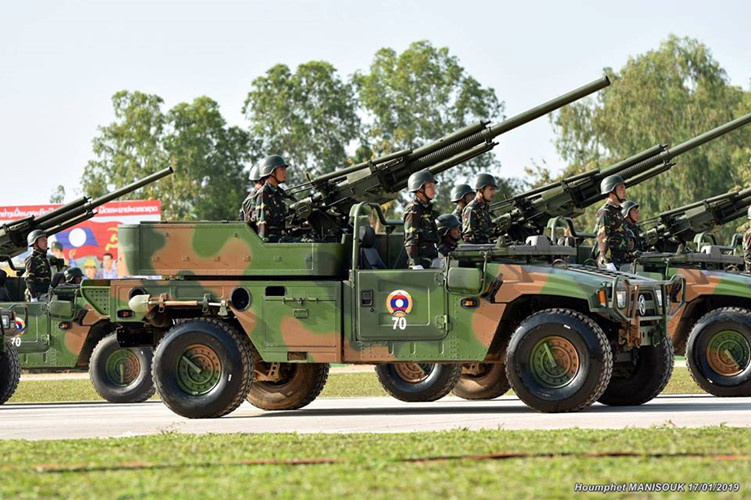 Интересно, что на параде в Лаосе принимала участие самая разнообразная военная техника. Это и древние советские образцы – такие как БТР-60, Т-62, ПТ-76, БМ-20 Град и довольно современные машины. Среди них – Hummer c безоткатным орудием, и cамоходные гаубицы на шасси китайских грузовики Dong Feng (6ж6). Также можно было увидеть и передовые системы залпового огня также на базе китайских грузовиков.