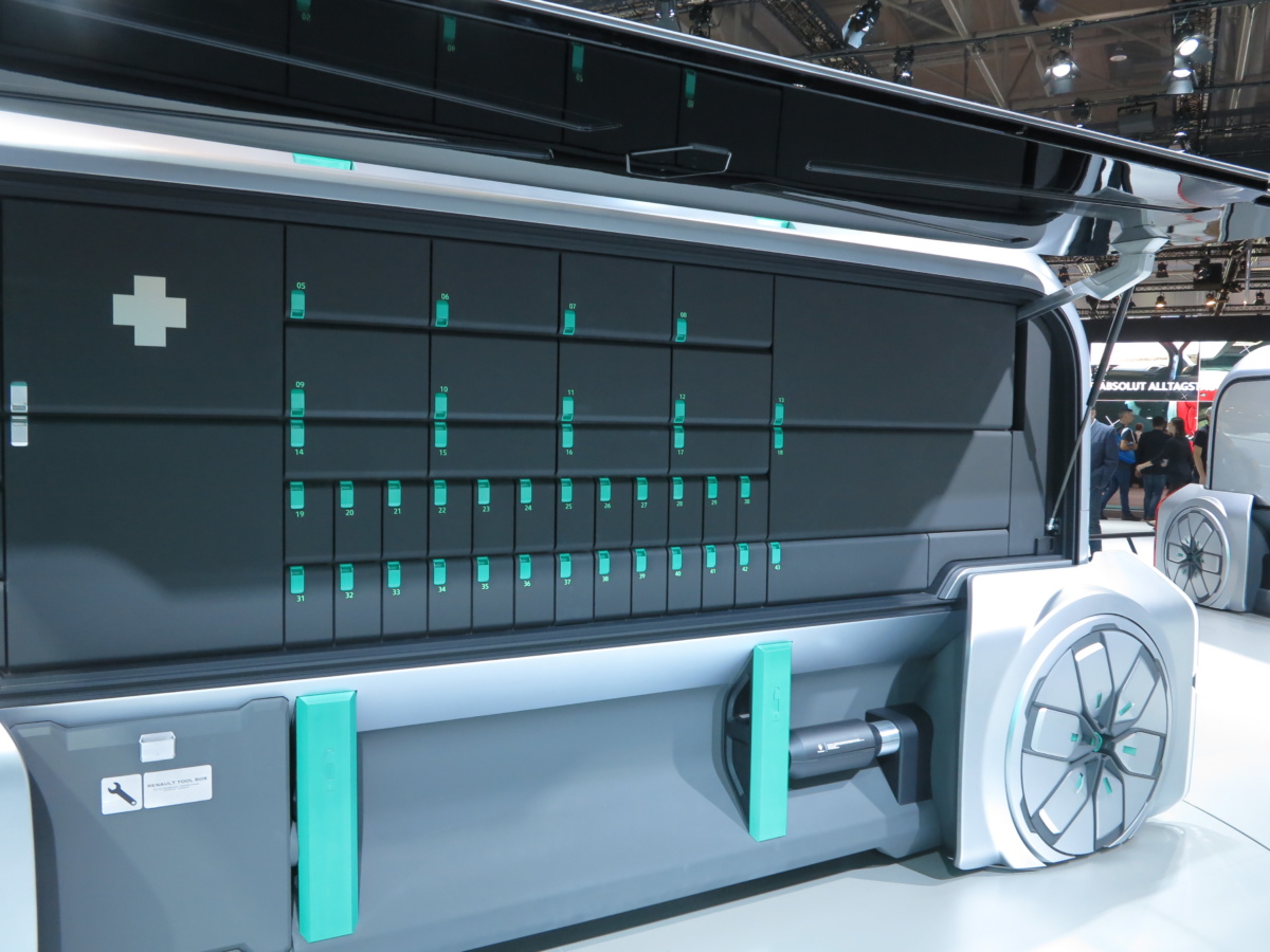 На стенде рядом с ведущим робоавтомобилем Renault EZ-PRO был представлен беспилотный модуль. С одной стороны это была кофейня (специально для выставки), а с другой набор боксов, наподобие почтовых ящиков. Таким образом модуль может обслуживать разные точки, доставляя груз непосредственно получателю.