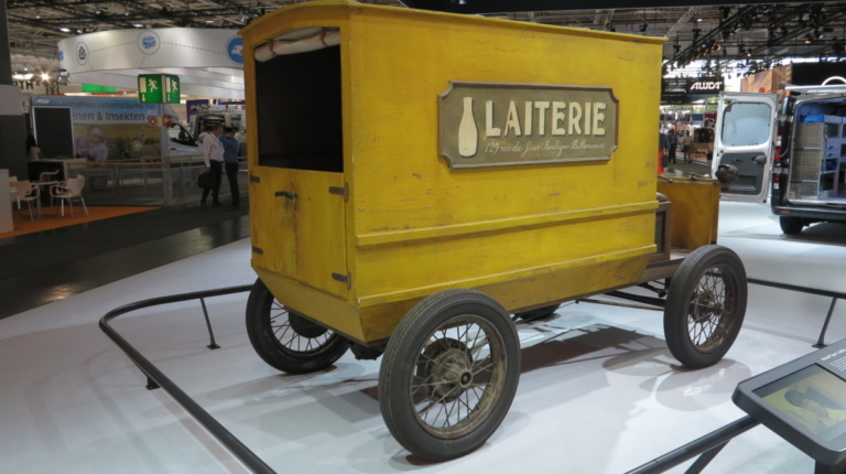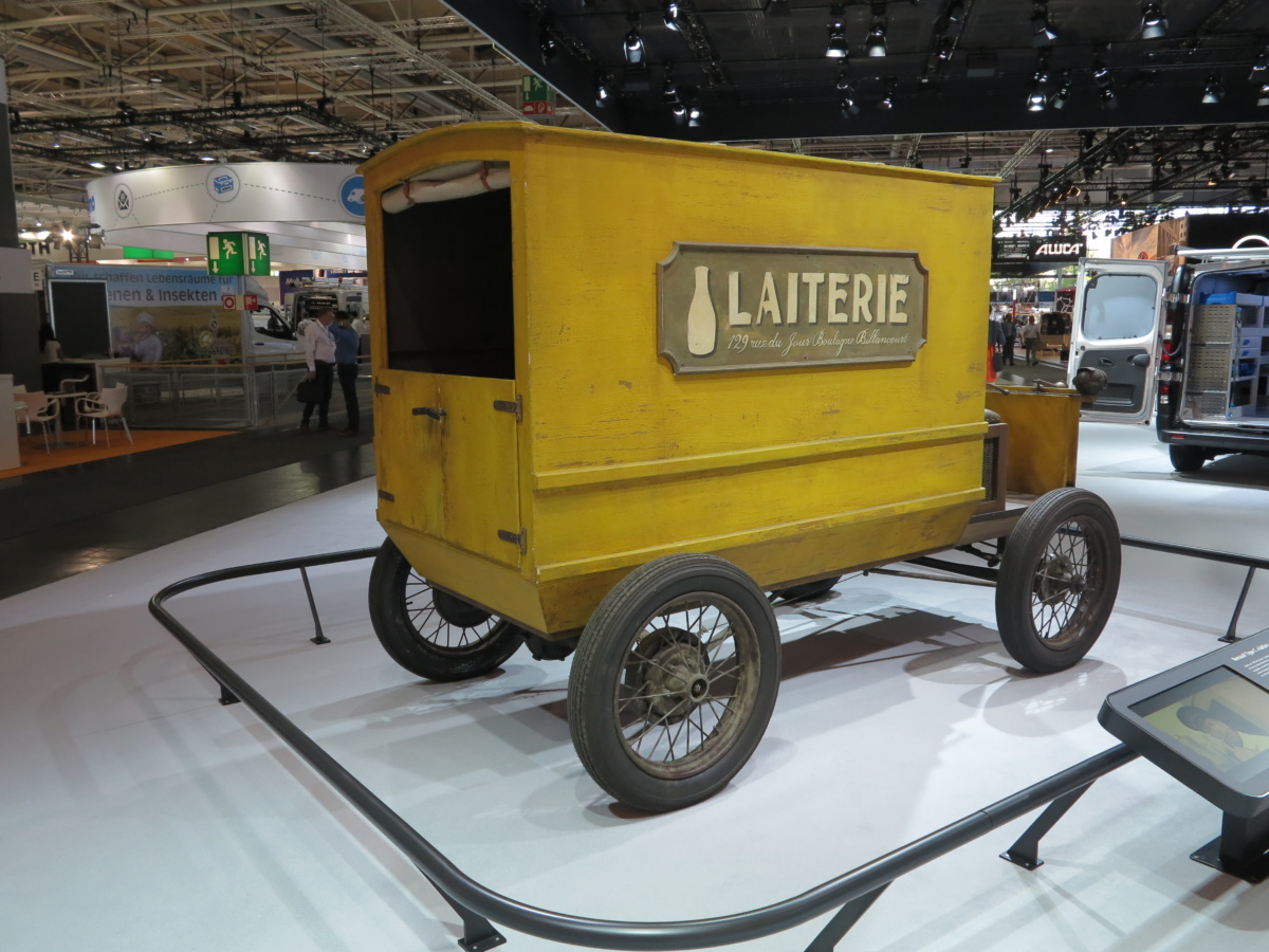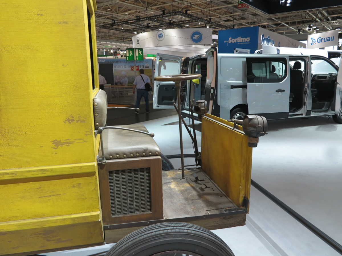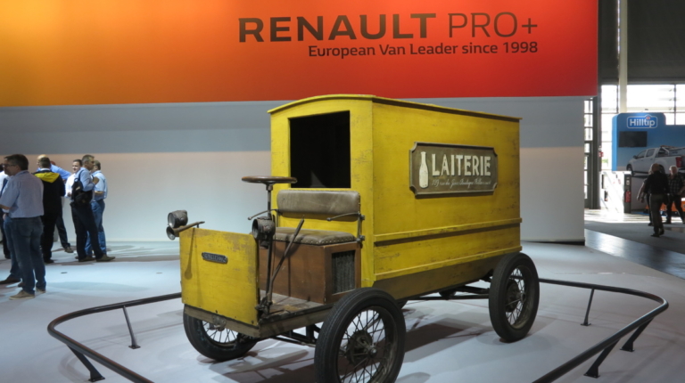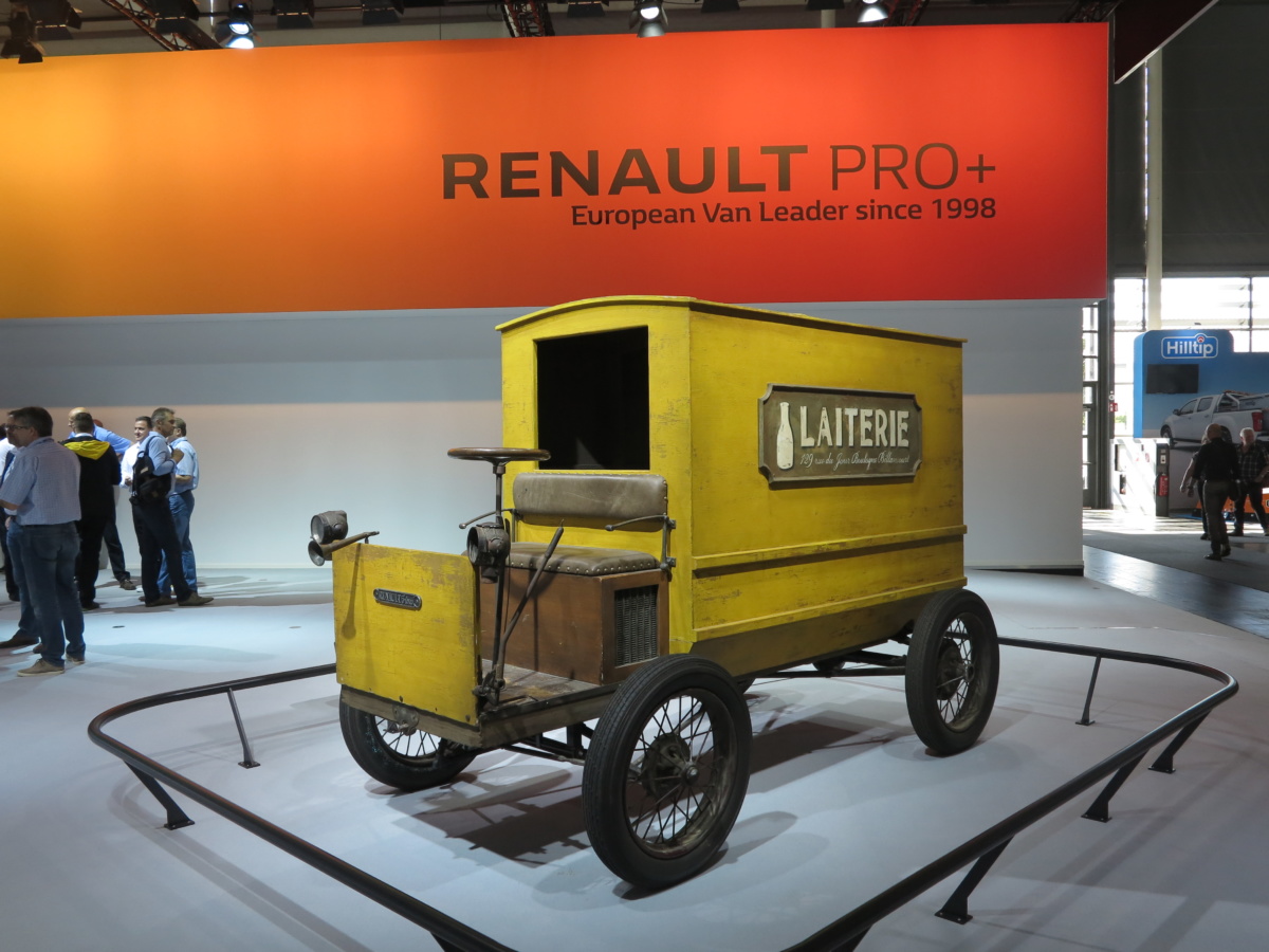 Компания Renault выпускает коммерческие автомобили уже почти 120 лет. И не случайно на стенде, рядом с футуристическим робоавтомобилем был представлен развозной фургон Renault Type C lautiel, выпущенный в 1900 году. Машина имеет длину всего 3,45 м, ширину 1,7 м и весит 700 кг. Фургончик приводит в движение одноцилиндровый бензиновый мотор мощностью 3,5 л.с. Привод – на задние колеса. Тормоза – с тросовым приводом.