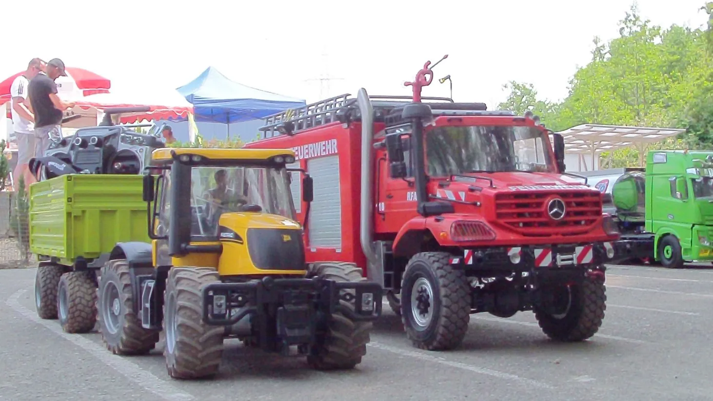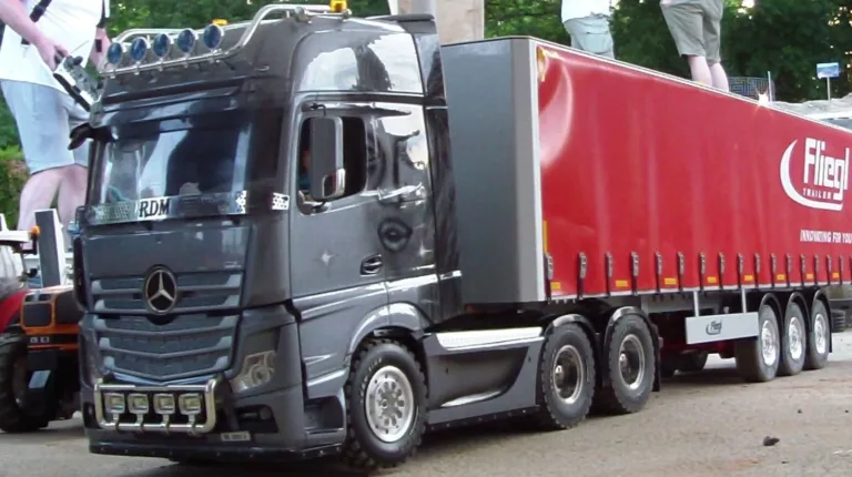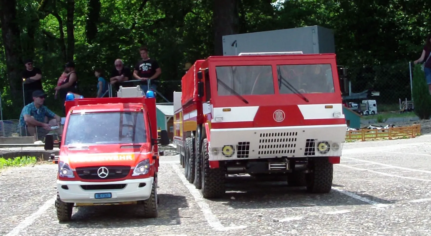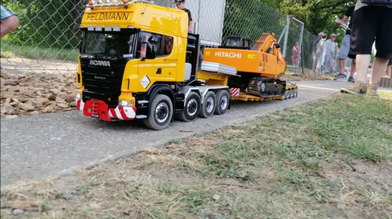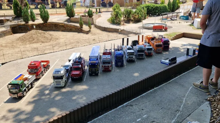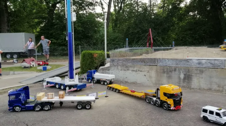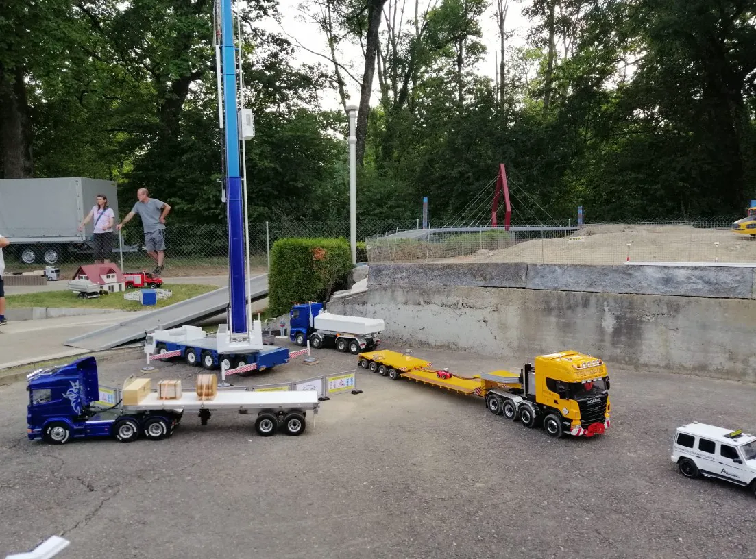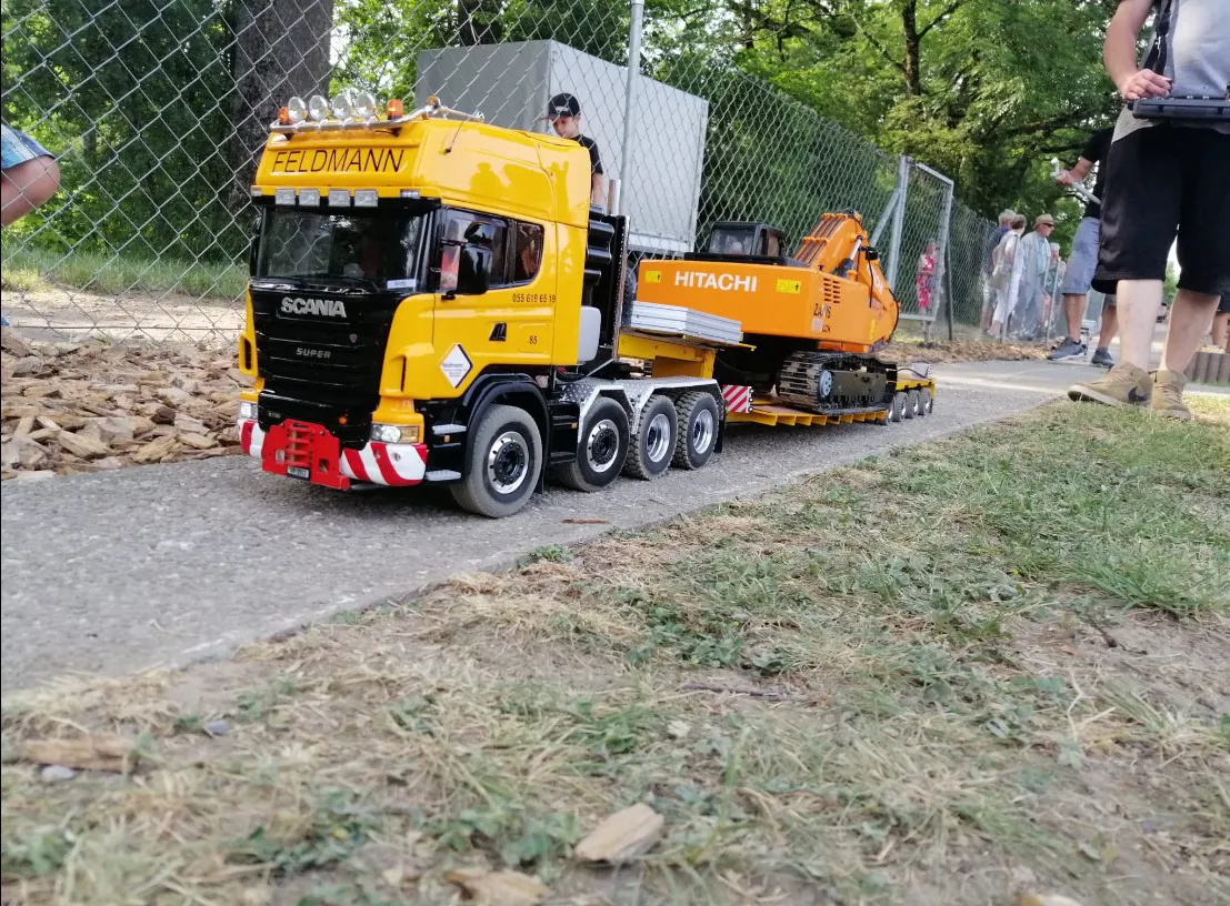 Сідлові тягачі Scania та Volvo працювали з багатовісними причепами, зокрема з розсувними рамами. Самоскиди були представлені шарнірно-зчленованими моделями Volvo, а також повнопривідними капотниками Mercedes-Benz Zetros. У разі аварії на місце події прибували пожежники – на повнопривідній машині Tatra T815 8×8, а також евакуатор Volvo FH 8х4. А увечері вся техніка починала грати сотнями вогнів. Загалом, свято радіомоделізму вдалося на славу.