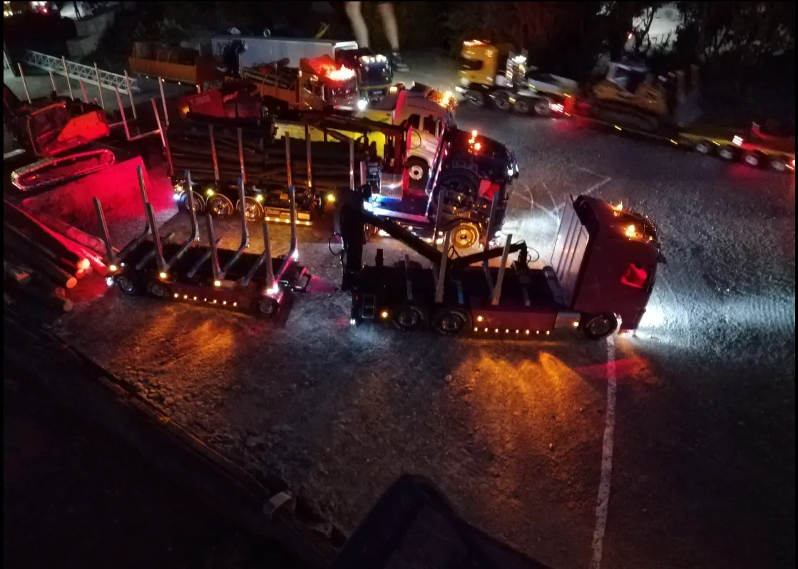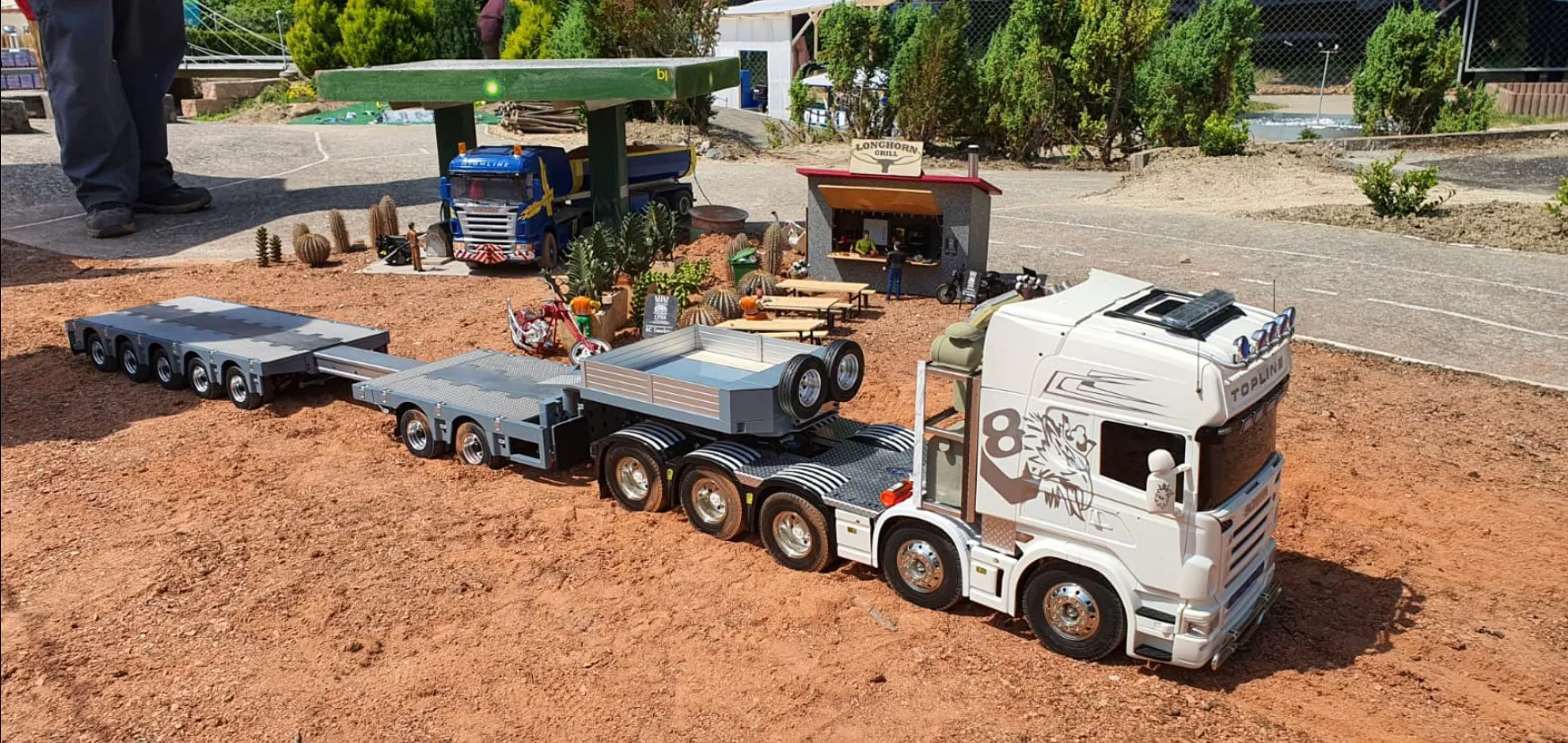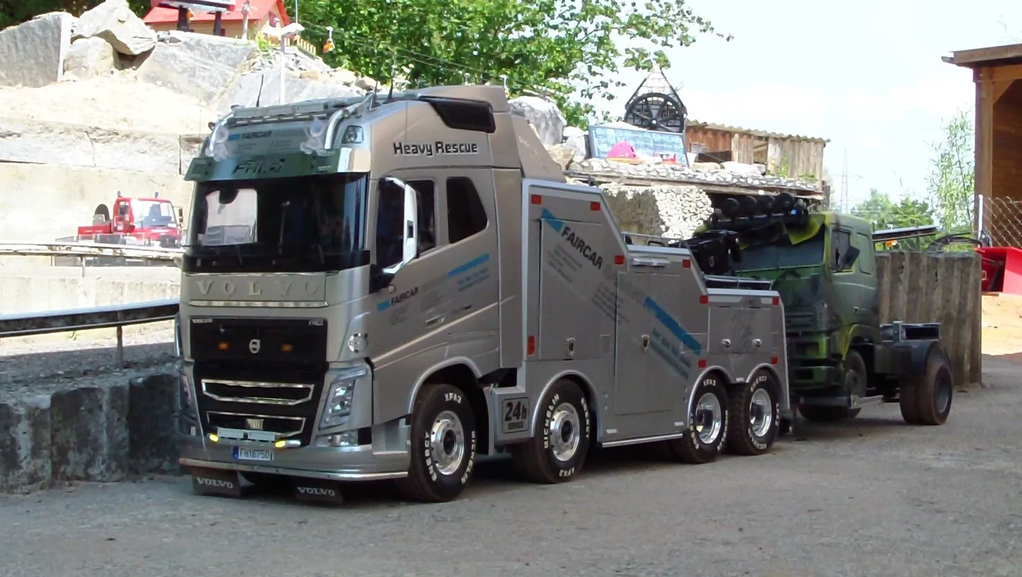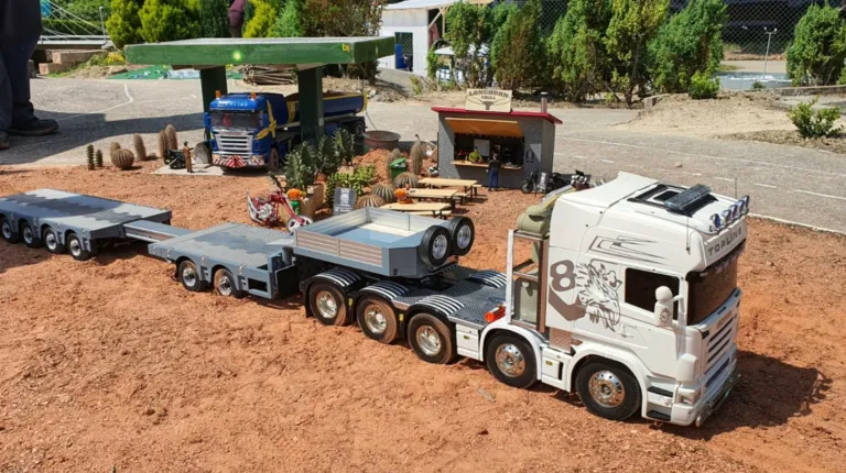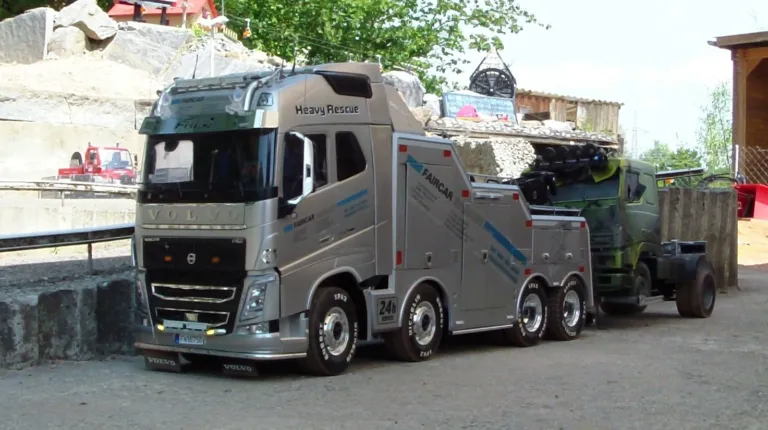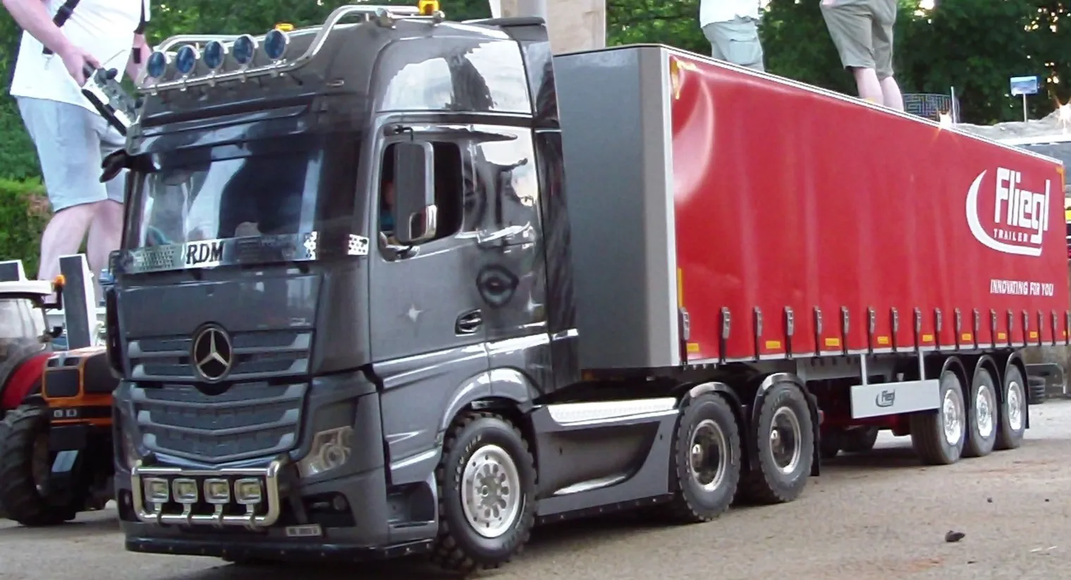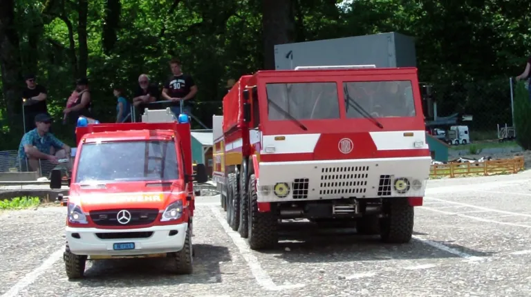 Сідлові тягачі Scania та Volvo працювали з багатовісними причепами, зокрема з розсувними рамами. Самоскиди були представлені шарнірно-зчленованими моделями Volvo, а також повнопривідними капотниками Mercedes-Benz Zetros. У разі аварії на місце події прибували пожежники – на повнопривідній машині Tatra T815 8×8, а також евакуатор Volvo FH 8х4. А увечері вся техніка починала грати сотнями вогнів. Загалом, свято радіомоделізму вдалося на славу.