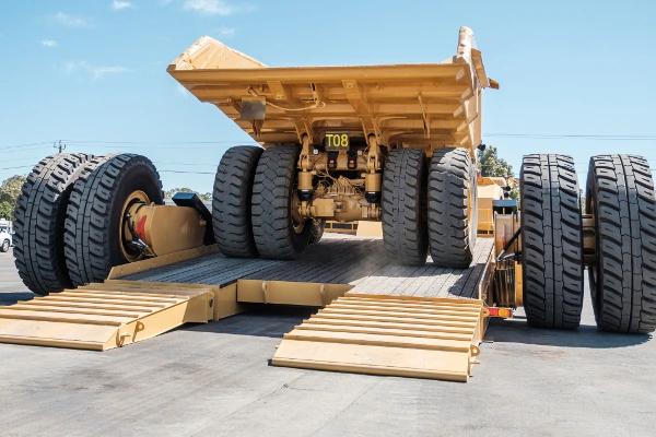 На рамах обоих полуприцепов установлен разгружаемый набок самосвальный кузов длиной 9,4 м каждый. Больше нельзя, из-за ограничения длины приемного устройства на перерабатывающем заводе. Емкость кузова – 38 м куб. То есть общая вместимость двух полуприцепов – 76 м куб. При габаритной длине почти 29 м радиус разворота автопоезда гиганта всего 14,5 м. Хотя можно развернуться и на меньшем пятачке – в два приема, немного сдав назад на тягаче, полуприцепы при этом неподвижные. Максимальная скорость движения с грузом – 45 км/ч, а порожняком – на 20 км/ч больше.