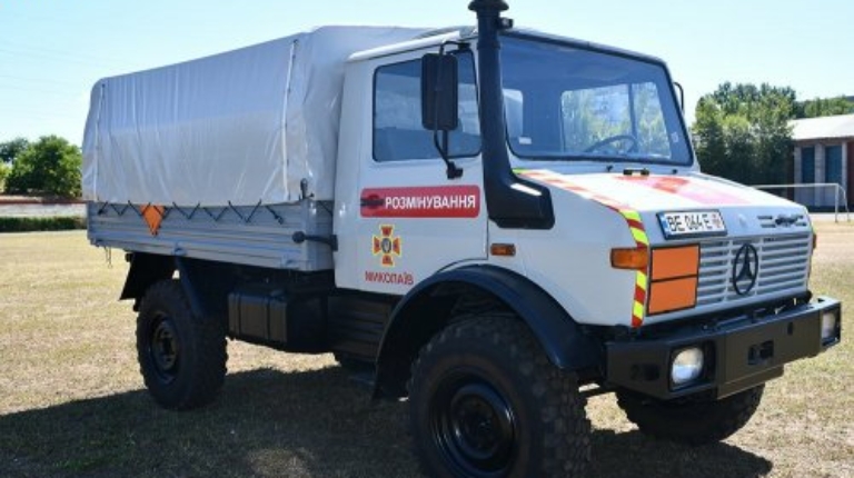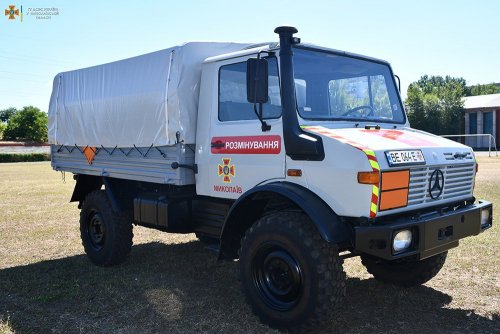 Зазначимо, що Миколаївський гарнізон ДСНС нещодавно отримав кілька одиниць техніки, зокрема для розмінування. Крім вищезгаданого Unimog, це ще одна бортова вантажівка — польської марки Jelcz, а також дві спеціальні машини Mercedes-Benz.