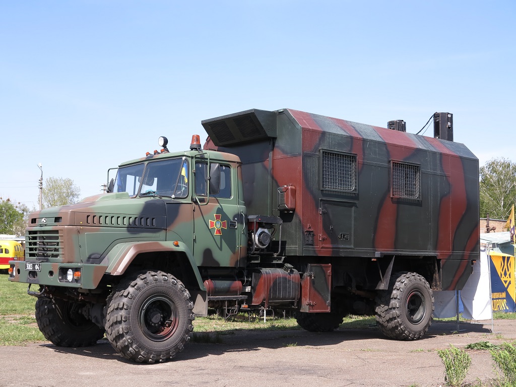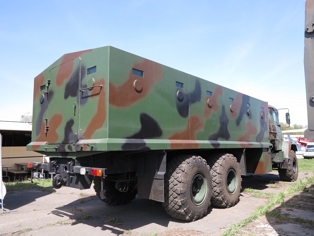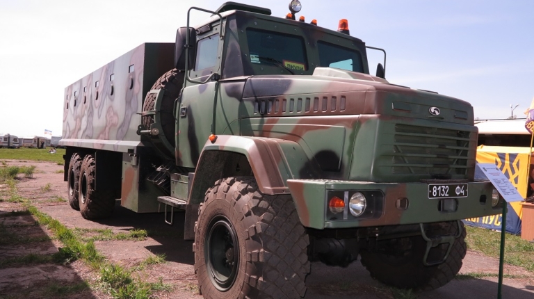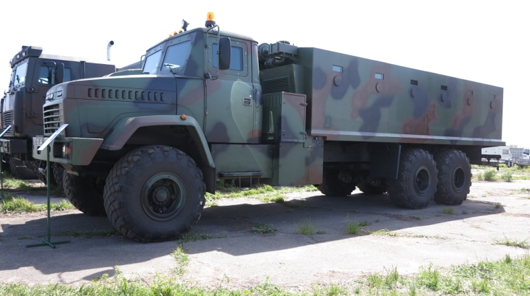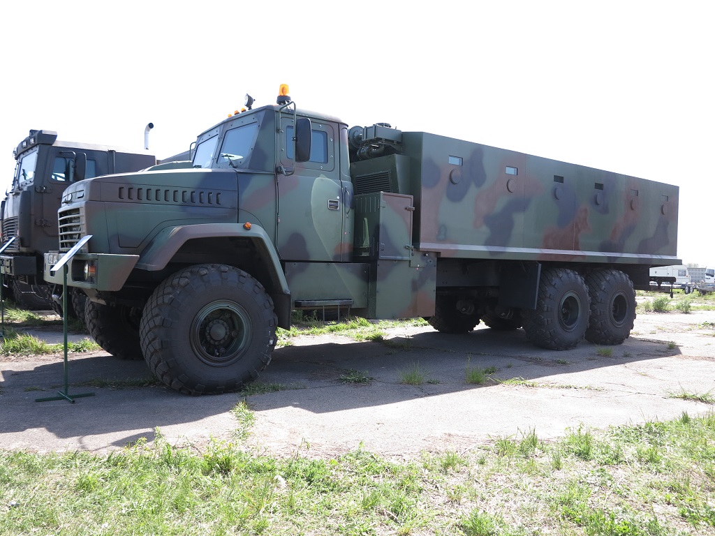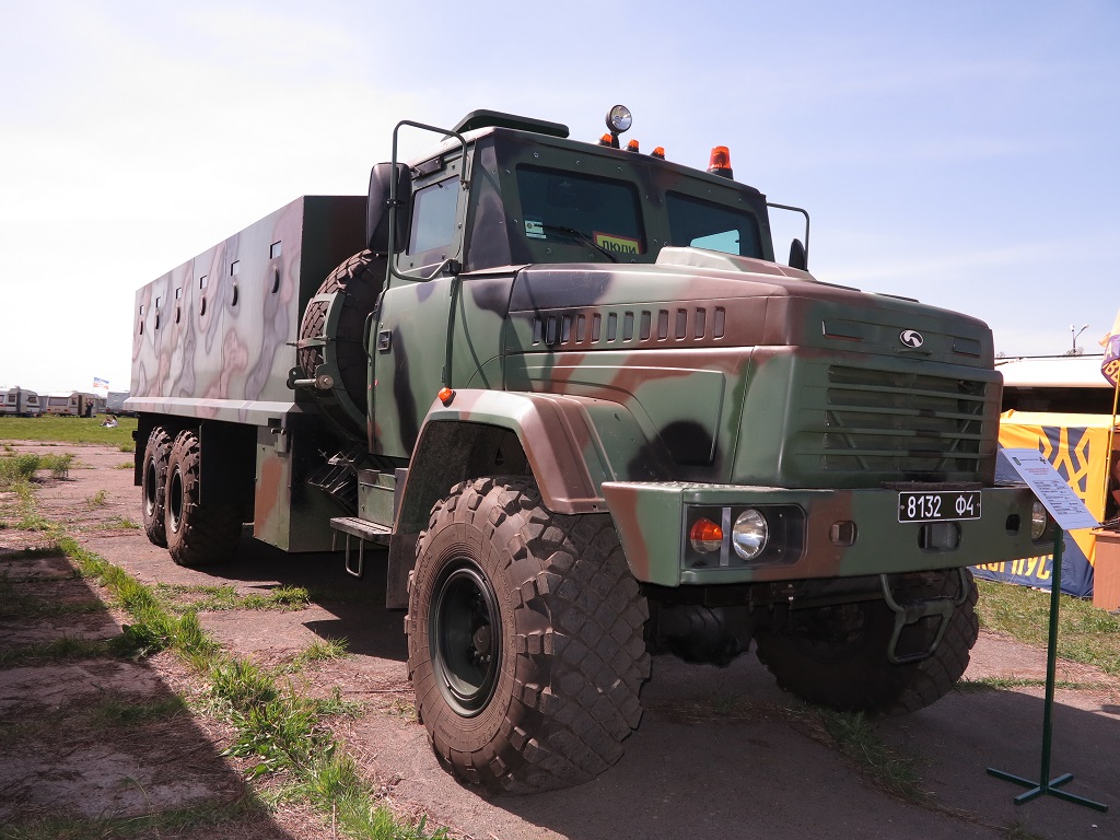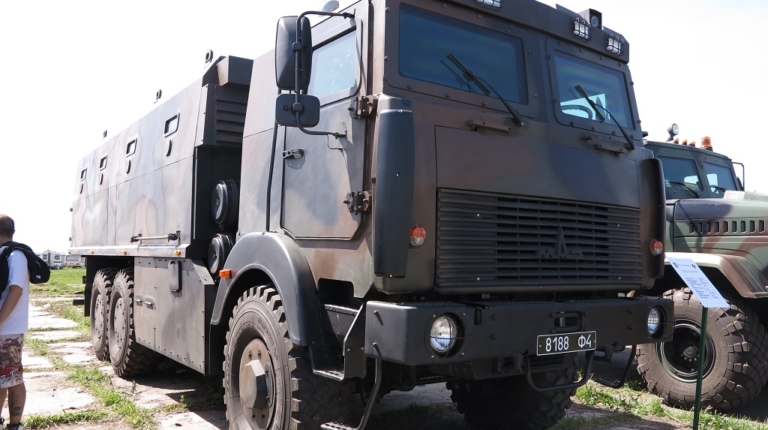 Поруч демонструвався автомобіль для перевезення особового складу на іншій базі КрАЗ-63221 (6х6). Його технічні дані ідентичні вищезазначеному МАЗ.