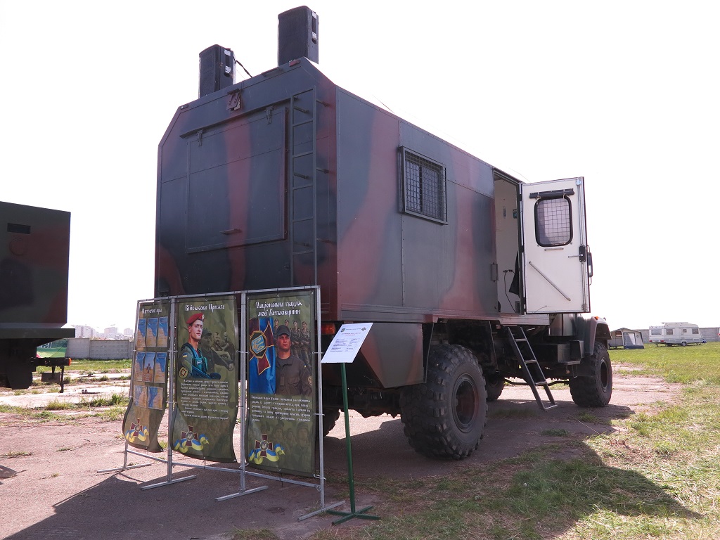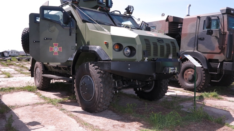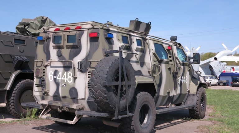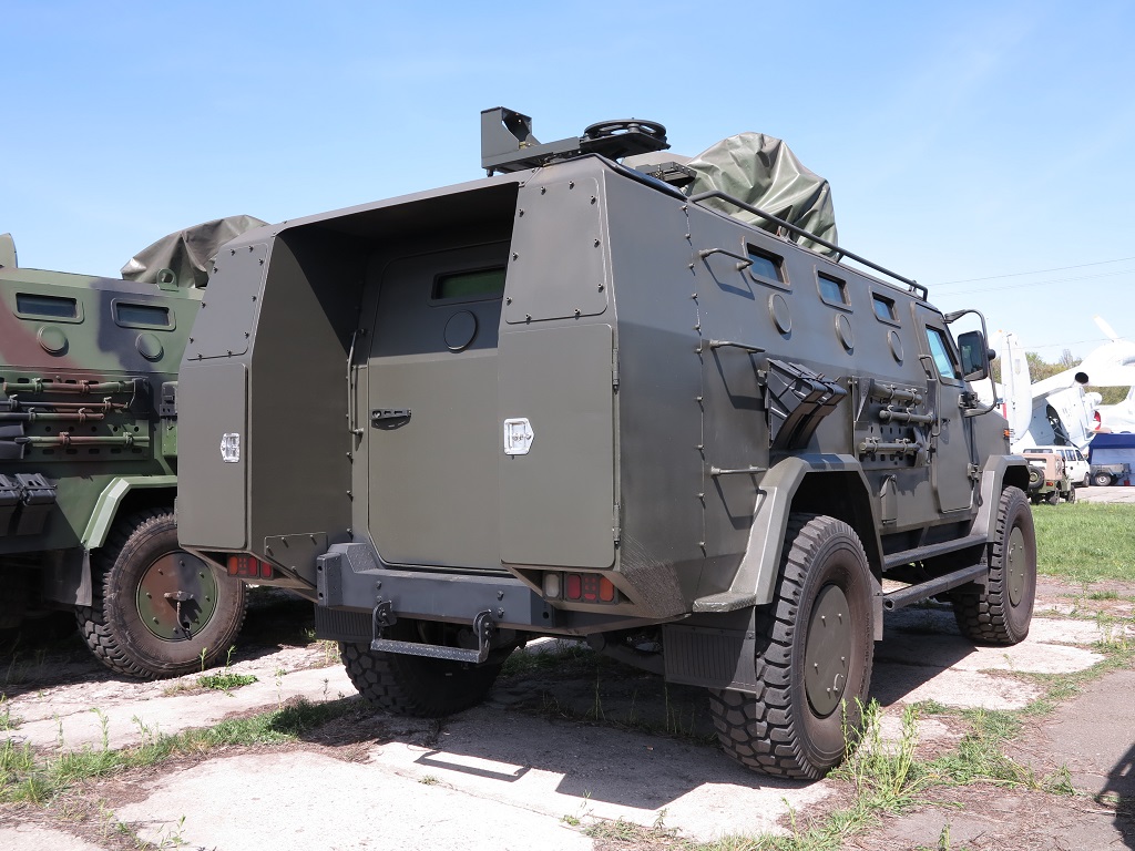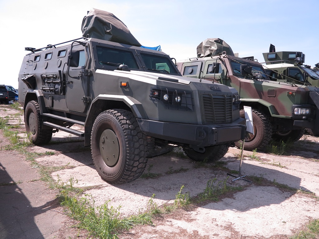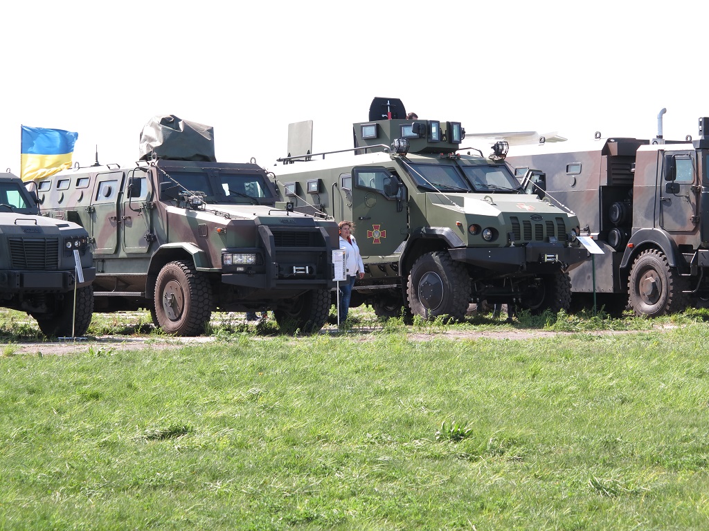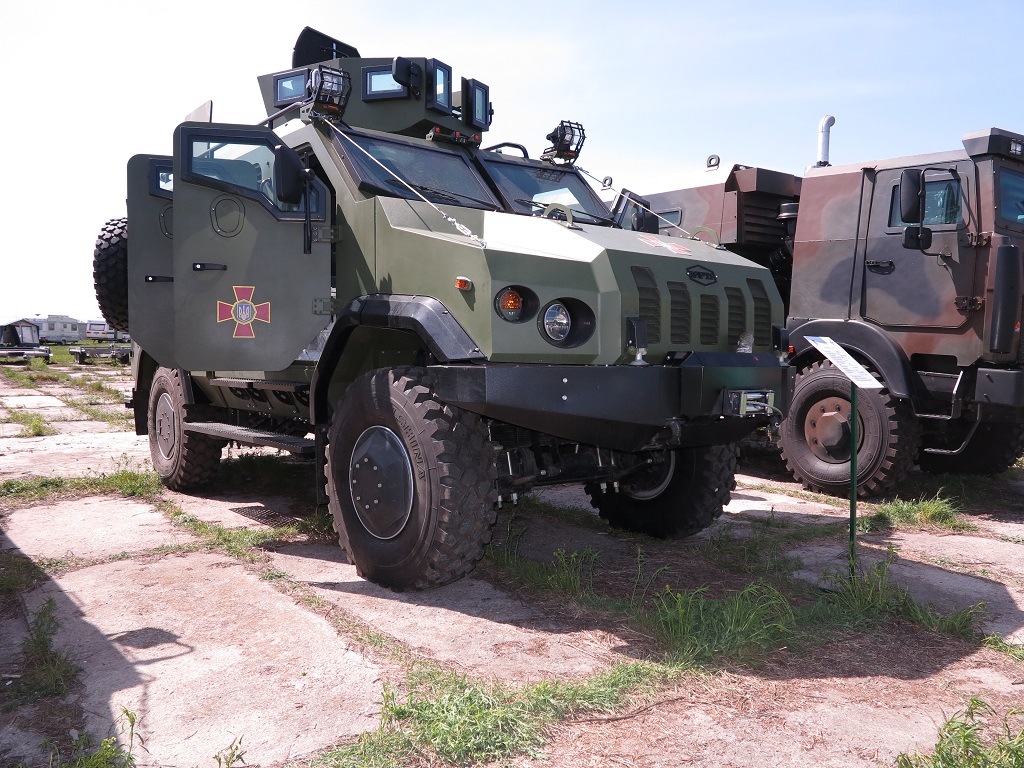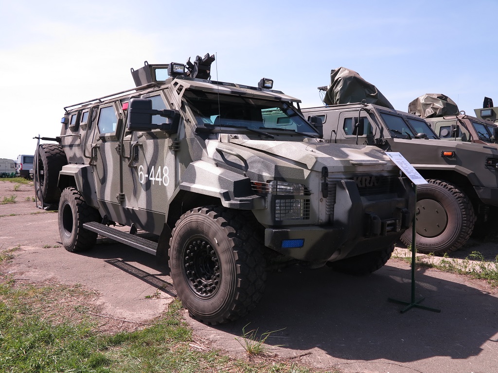 Поруч стояв бронеавтомобіль «Варта», виготовлений на шасі повнопривідної вантажівки МАЗ (4х4) концерном “Бронетехніка України”. Повна маса – 16 600 кг. Турбодизель – 300 к.с. Витрата палива на шосе – 35 л на 100 км. Ємність бака – 350 л. Максимальна швидкість – 120 км/год. Посадкових місць – 2+8. Озброєння – 12,7-мм кулемет. Клас захисту броні – 6. Днище – протимінне, V-подібне. За словами одного з військових, ціна автомобіля становить 7,2 млн грн.