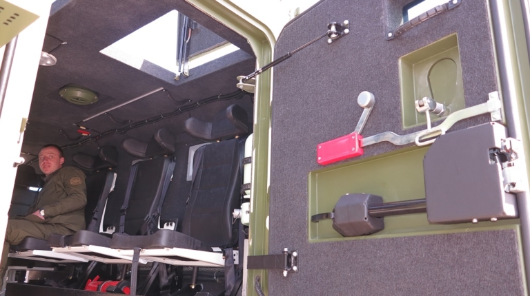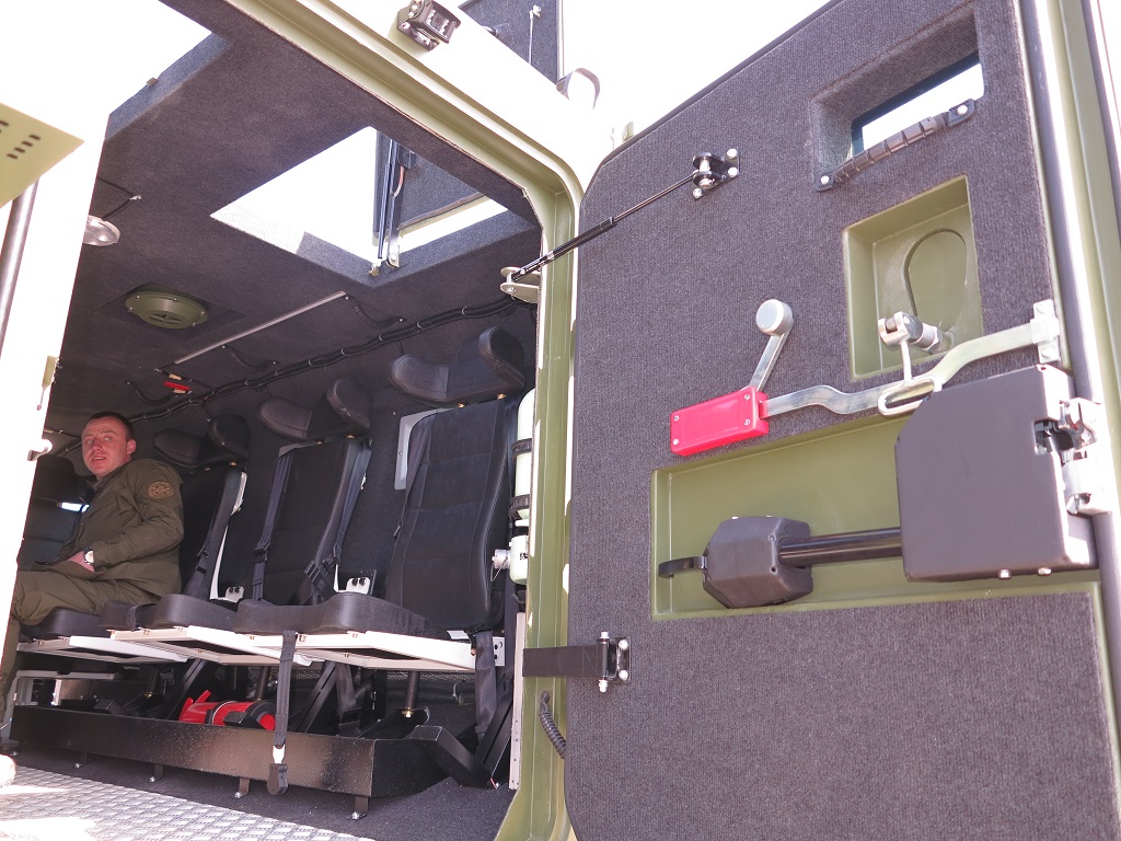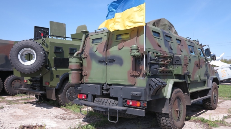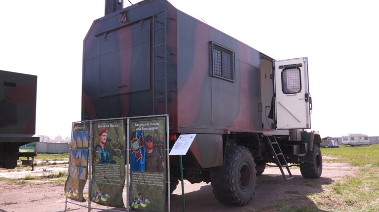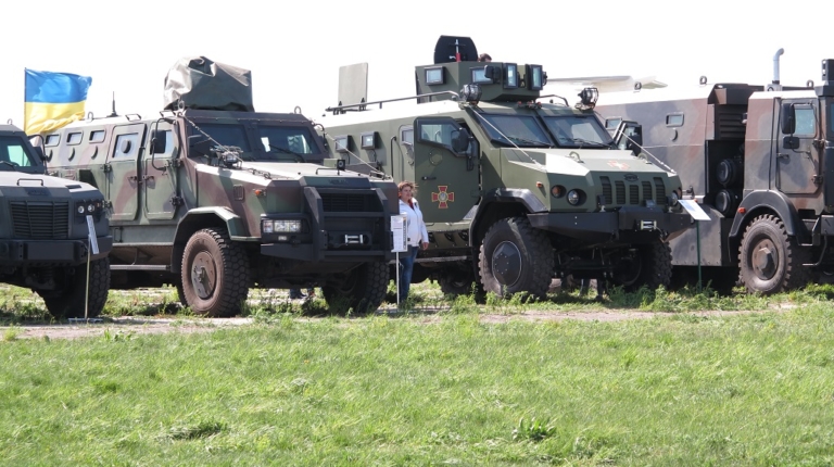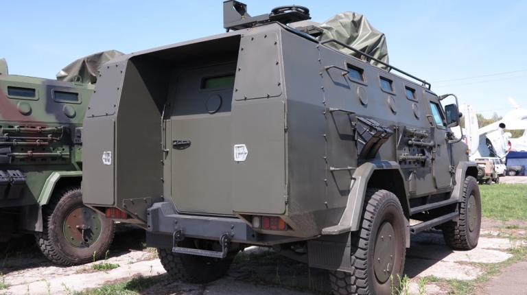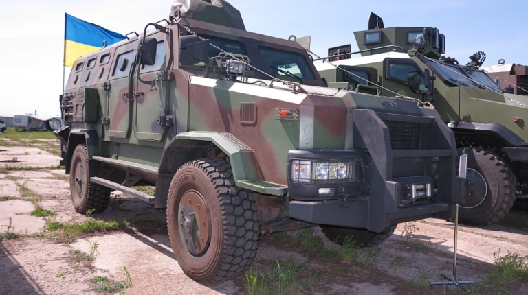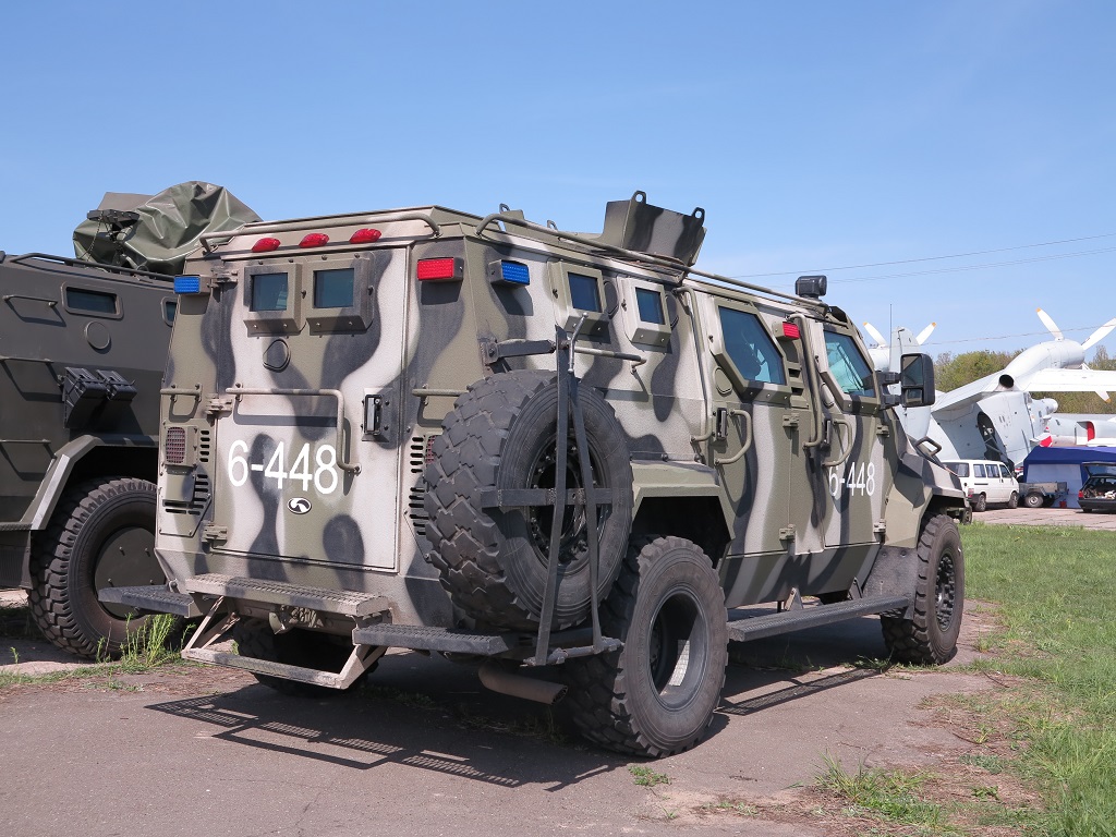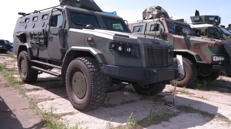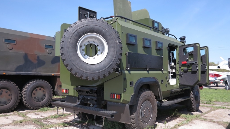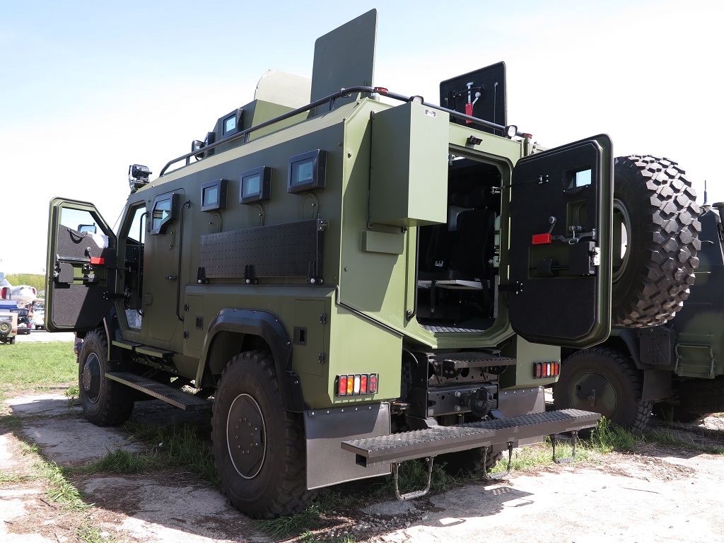 Поруч стояв бронеавтомобіль «Варта», виготовлений на шасі повнопривідної вантажівки МАЗ (4х4) концерном “Бронетехніка України”. Повна маса – 16 600 кг. Турбодизель – 300 к.с. Витрата палива на шосе – 35 л на 100 км. Ємність бака – 350 л. Максимальна швидкість – 120 км/год. Посадкових місць – 2+8. Озброєння – 12,7-мм кулемет. Клас захисту броні – 6. Днище – протимінне, V-подібне. За словами одного з військових, ціна автомобіля становить 7,2 млн грн.