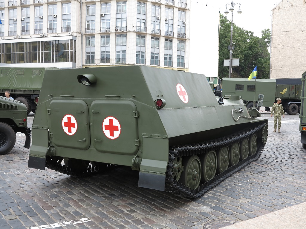 На выставке в Киеве можно увидеть также бронированную медицинскую машину МТ-ЛБС, которая предназначена для эвакуации раненных непосредственно с поля боя с одновременным оказанием неотложной медпомощи во время транспортировки. Производитель – НПК «ПК «Система».