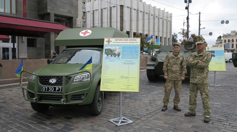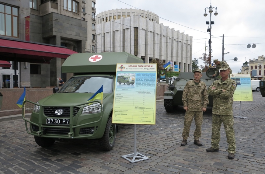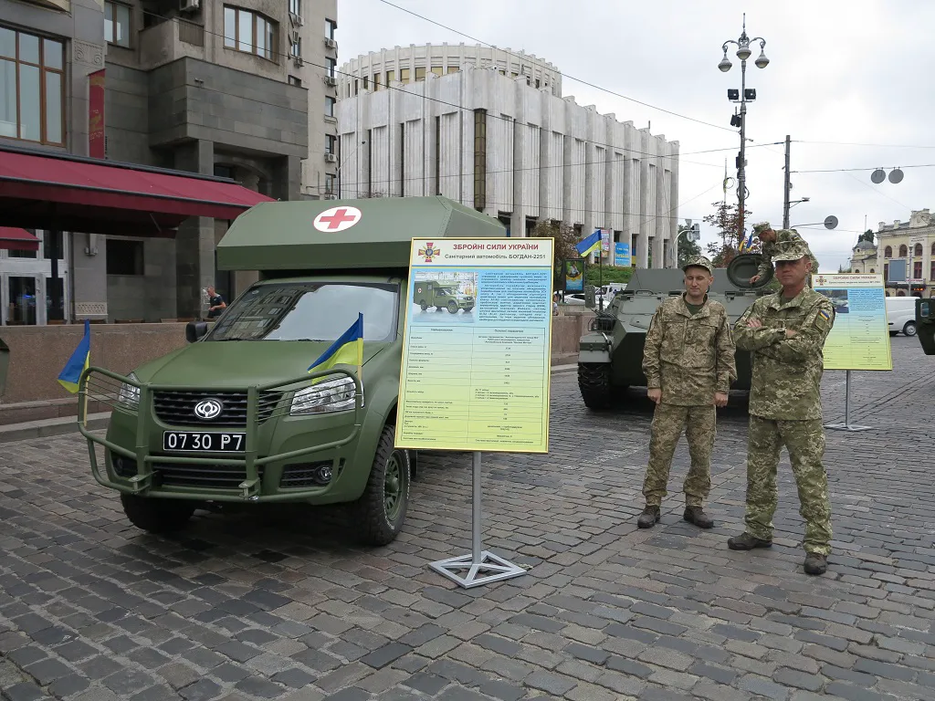 На выставке военной техники «Сила непокоренных», которая проходит в Киеве, на Крещатике с 22 по 27 августа, можно увидеть новые внедорожники для украинской армии. Это машины «Богдан-2251» и «Богдан-2351». Они произведены компанией «Богдан Моторс» в Черкассах и представляют собой модернизированные коммерческие автомобили Great Wall Wingle 5.