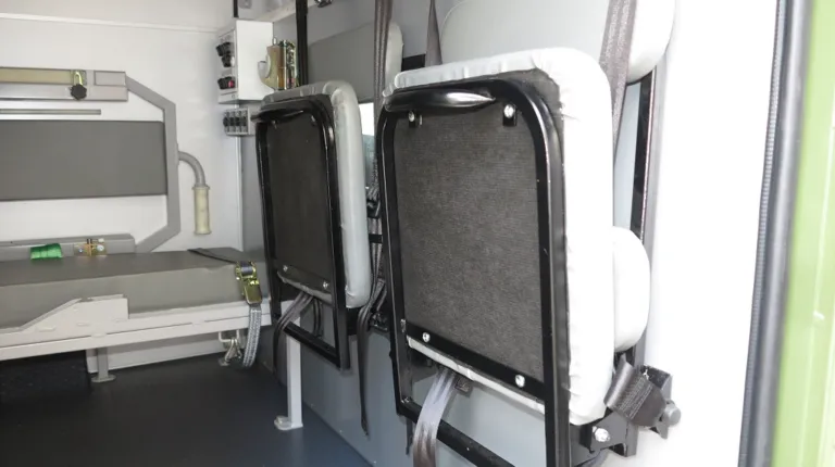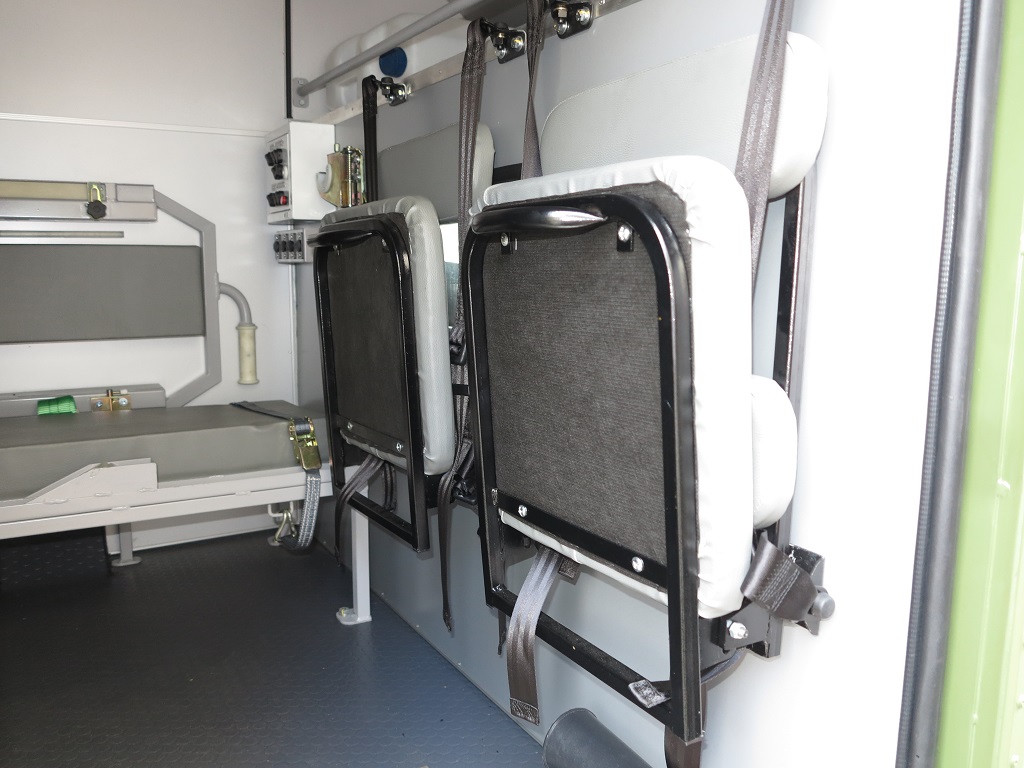 Он может комплектоваться как штатным оборудованием для санитарных автомобилей класса А, так и дополнительным оборудованием для машин класса А1/А2. Это светозвуковая сигнализация, проблесковые маячки, дополнительный комплект аккумуляторов, адаптер переменного тока (220В), автономный отопитель Webasto.