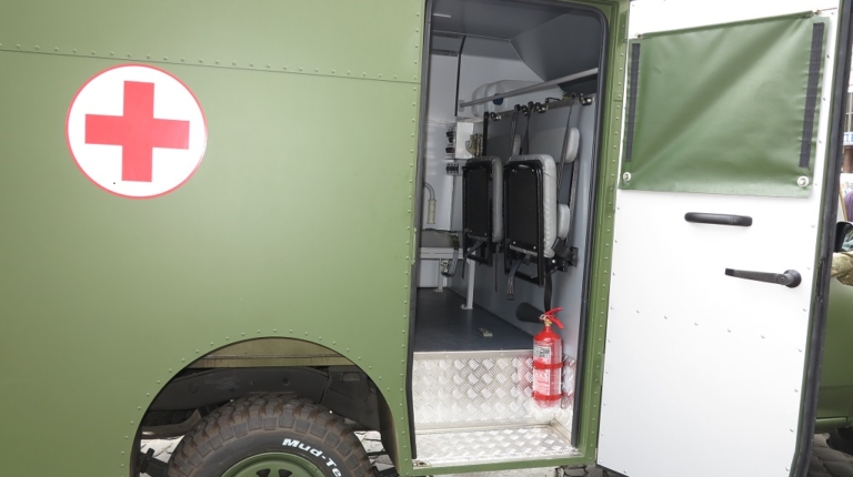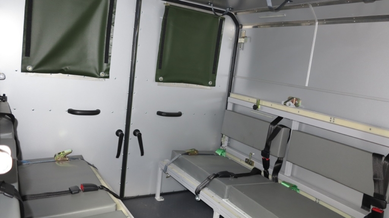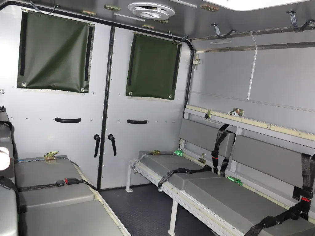 Кузов надстройка выполнена из легких алюминиевых сэндвич-панелей и в случае необходимости может быть легко переставлена на другое шасси. Экипаж – 3 чел. Санитарный автомобиль может транспортировать 8 легкораненых (в положении сидя), или 4 легкораненых и 2 тяжелораненых (на носилках) или 4 тяжелораненых.
