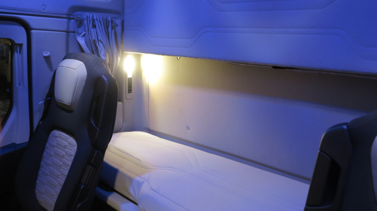 Для тяжелой поклажи есть два отсека под нижней спальной полкой, причем доступ к ним возможен и снаружи, через специальные люки за дверьми. Для увеличения полезного пространства внутри кабины, верхняя спальная полка откидывается на 90 градусов вверх и плотно прилегает к задней стенке. Под нижней полкой установлен выдвижной холодильник с объемом камеры 38 л.